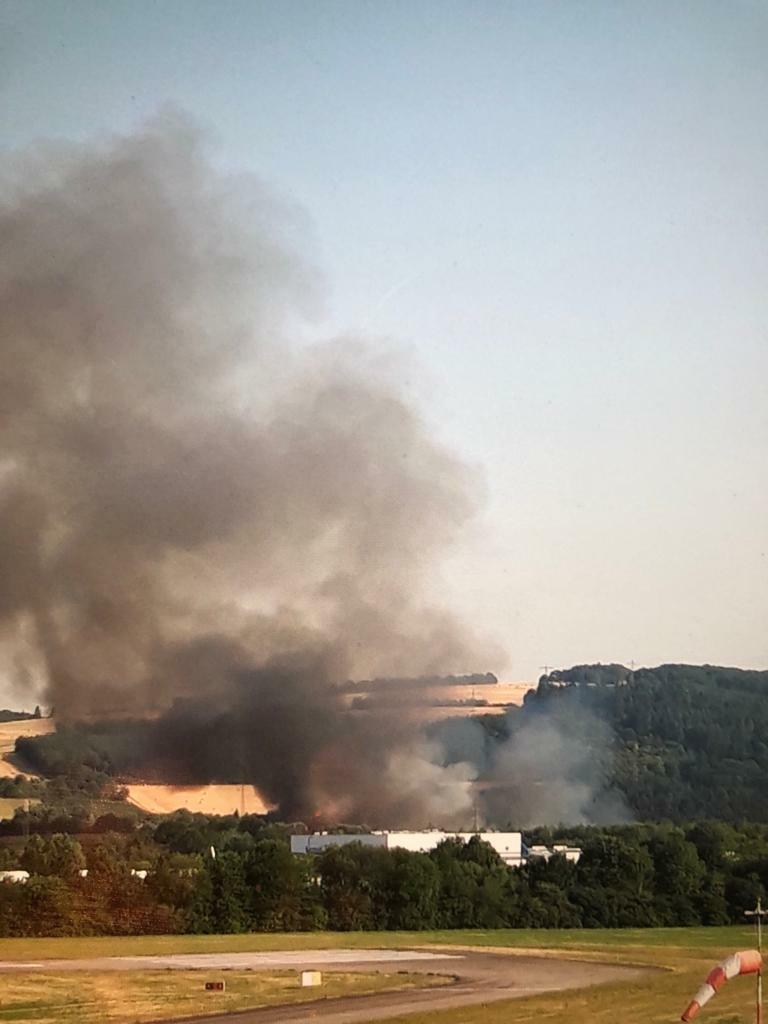 Zwischenzeitlich stand eine Fläche mit einer Länge von circa 300 Metern und einer Breite von circa 100 Metern lichterloh in Flammen. Es kam zu einer erheblichen Rauchentwicklung. Das Feuer konnte durch die eingesetzten Kräfte der umliegenden Feuerwehren zügig unter Kontrolle gebracht werden. Die Genaue Brandursache ist unklar. Es kann nicht ausgeschlossen werden, dass das Feuer durch die zu diesem Zeitpunkt laufenden Mäh- und Erntearbeiten mit einem Mähdrescher verursacht wurde. Im Einsatz waren insgesamt zehn Feuerwehren der umliegenden Ortschaften mit circa 100 Einsatzkräften, zwei Rettungswagen des DRK Schweich und Kräfte der Polizeiinspektion Schweich sowie der Polizeiautobahnstation Schweich. Aufgrund der hohen Temperaturen kollabierte ein Feuerwehrmann während der Löscharbeiten. Er wurde in ein Krankenhaus gebracht. Die L 141 wurde bis zum Abschluss der laufenden Löscharbeiten auf dem betroffenen Teilstück zwischen dem Mitfahrerparkplatz Bekond und der Gaststätte Leinenhof für circa 3,5 Stunden komplett gesperrt. Unterstützt wurde die Feuerwehr bei ihren Löscharbeiten durch etliche Landwirte, die mit ihren Traktoren und Tankanhängern die Wasserversorgung gewährleisteten. Dabei platzte die Dieselleitung an einem der Traktoren. Hierdurch kam es zu weiteren Verkehrsbehinderungen. Die auslaufenden Betriebsstoffe wurden von der Straßenmeisterei Trier beseitigt. RED, Fotos: Anette Weidler/Agentur Siko