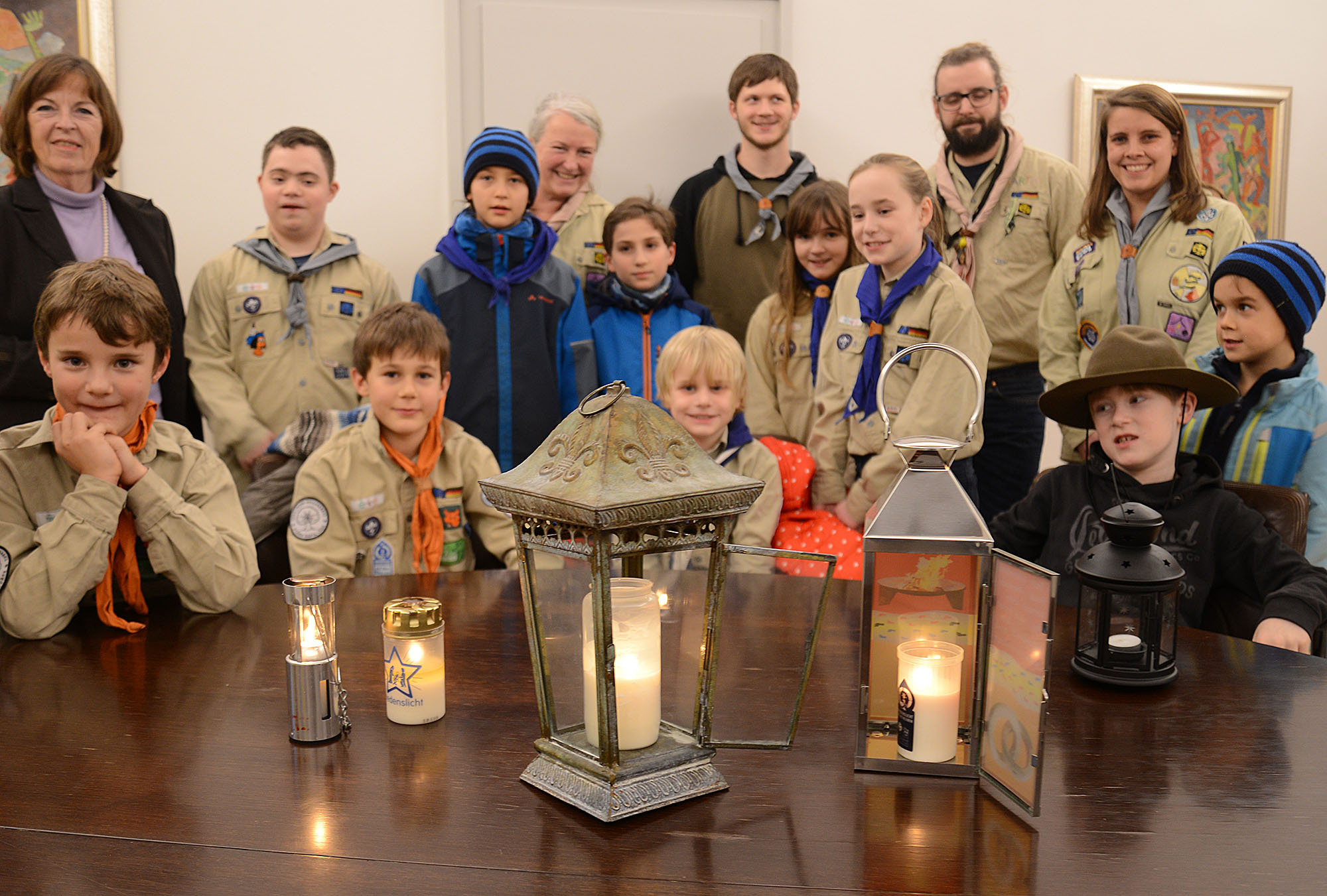 Die Kinder vom Stamm Santa Cruz der Deutschen Pfadfinderschaft St. Georg haben kurz vor Weihnachten das Friedenslicht nach Trier gebracht und kamen damit auch im Rathaus vorbei.