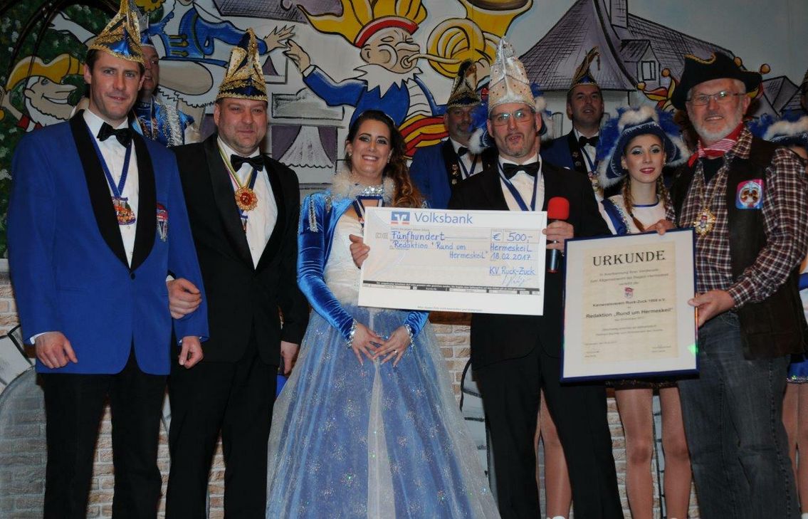 Im Verlauf des kurzweiligen Abends sorgten immer wieder flotte und professionelle Garde- und Showtänze für einen besonderen Augenschmaus und vermittelten einen Einblick in die hervorragende Jugendarbeit des KV Ruck Zuck Hermeskeil. Trainiert wurden die Garden von Marie Hartig und Vanessa Haak (Bambinigarde), Marie Hartig (Jugendgarde), Anna Haag (Juniorengarde), Dunja Resch (Showtanz Juniorengarde), Helena Feiler und Franziska Zimmer (Prinzengarde). Den mit 500 Euro dotierten Ehrenorden des KV Ruck Zuck verlieh KV-Vorsitzender Jörg Hartig in diesem Jahr an die Redaktion „Rund um Hermeskeil“.
