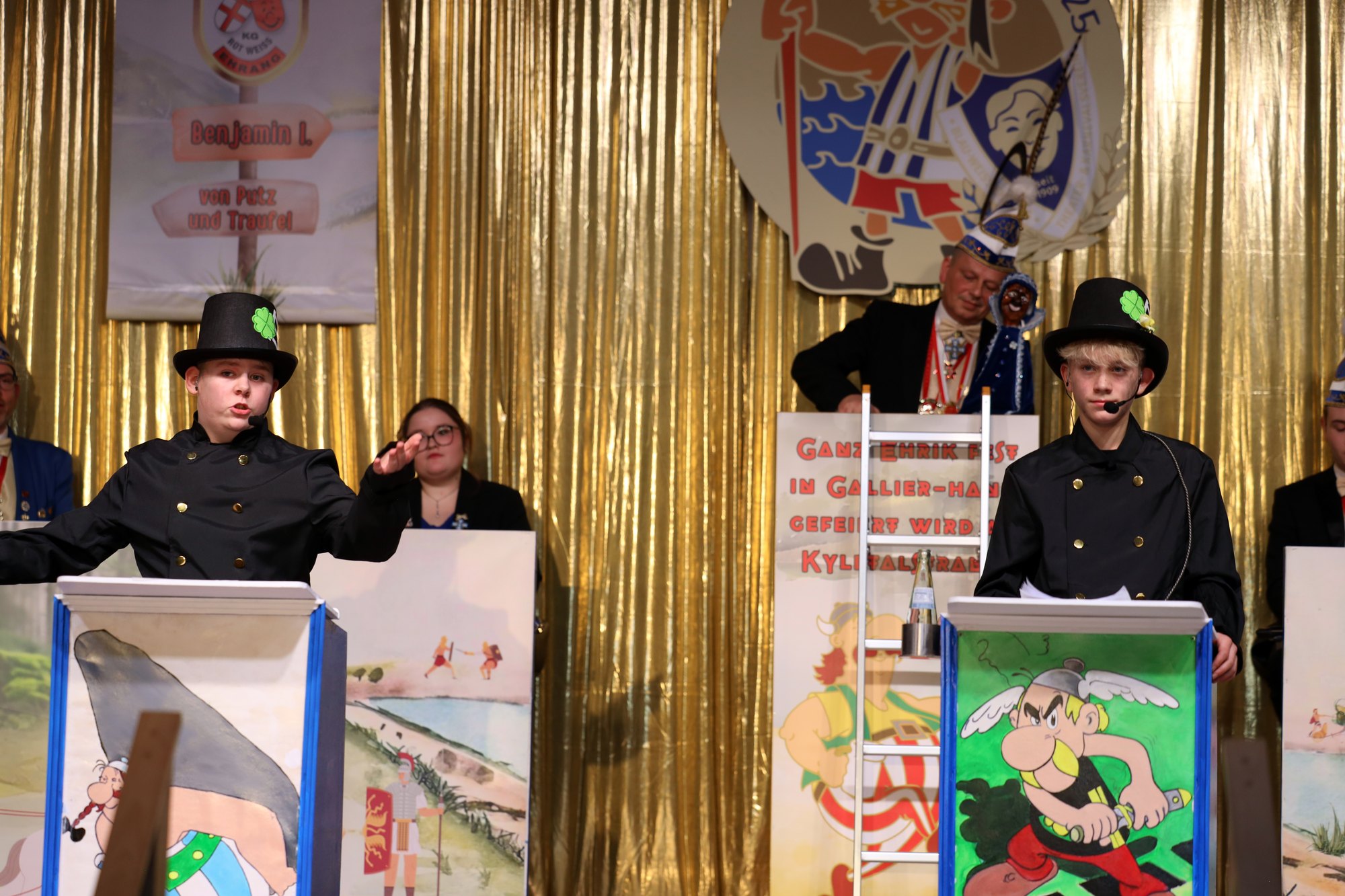 Unter dem Motto "Ganz Ehrik fest in Gallierhand, gefeiert wird am Kylltalstrand" ging die erste von zwei Sitzungen über die Bühne. Besonders bemerkenswert: Das über fünfstündige Programm wurde komplett aus eigenen Reihen gestaltet – ohne Pause und mit durchgängiger Energie.
