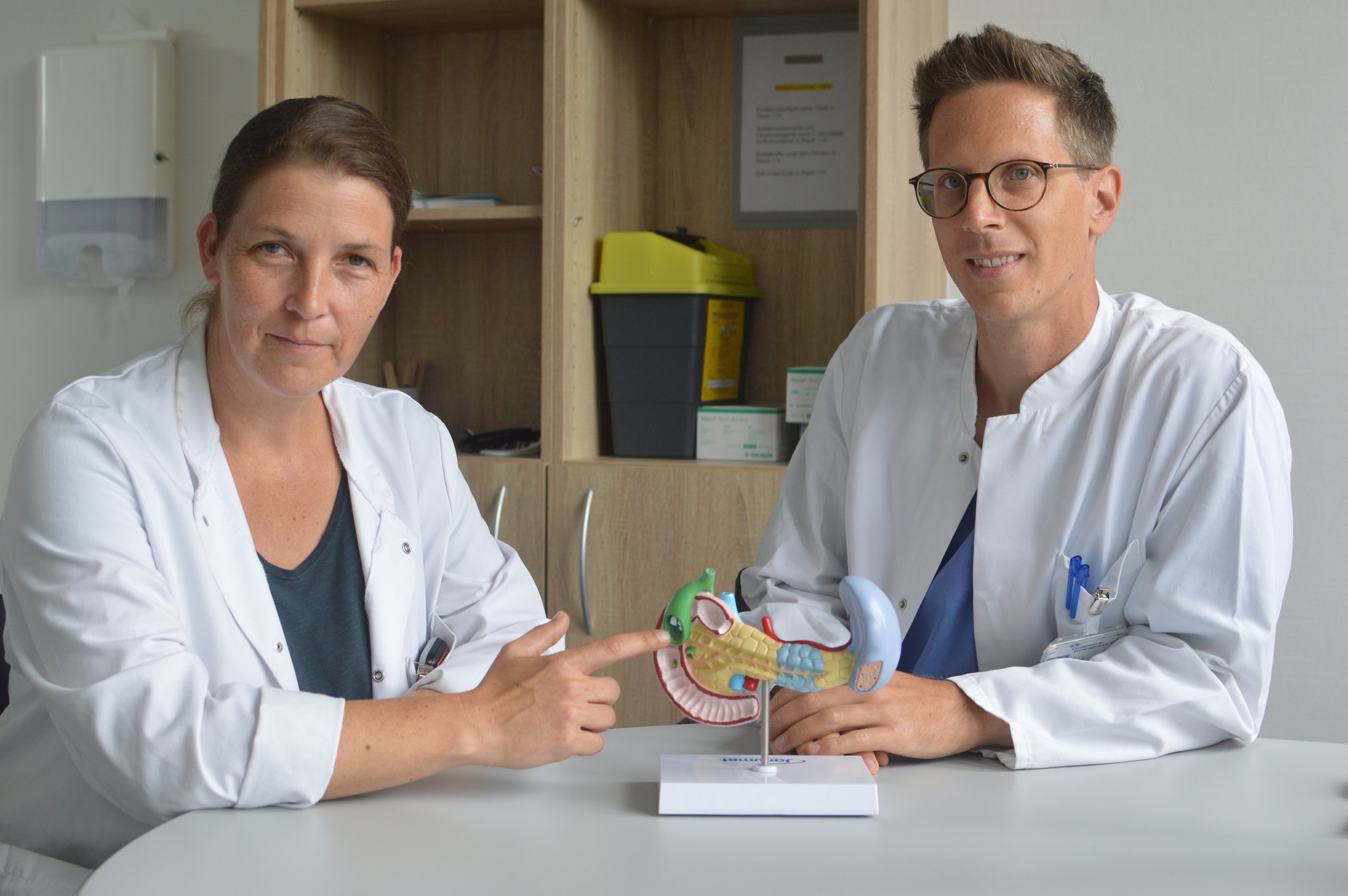 Und Dr. med. Christian Wiebe, Leiter des Pankreaszentrums, ergänzt: "Ein weiterer Vorteil eines zertifizierten Pankreaskarzinomzentrums ist die interdisziplinäre Zusammenarbeit. Das bedeutet, dass Ärzte verschiedener Fachrichtungen wie Gastroenterologie, Chirurgie, Onkologie, Radiologie und Pathologie eng zusammenarbeiten, um individuelle Behandlungspläne zu erstellen. Diese ganzheitliche Herangehensweise gewährleistet, dass jeder Patient eine maßgeschneiderte Behandlung erhält, die auf seine spezifischen Bedürfnisse zugeschnitten ist."