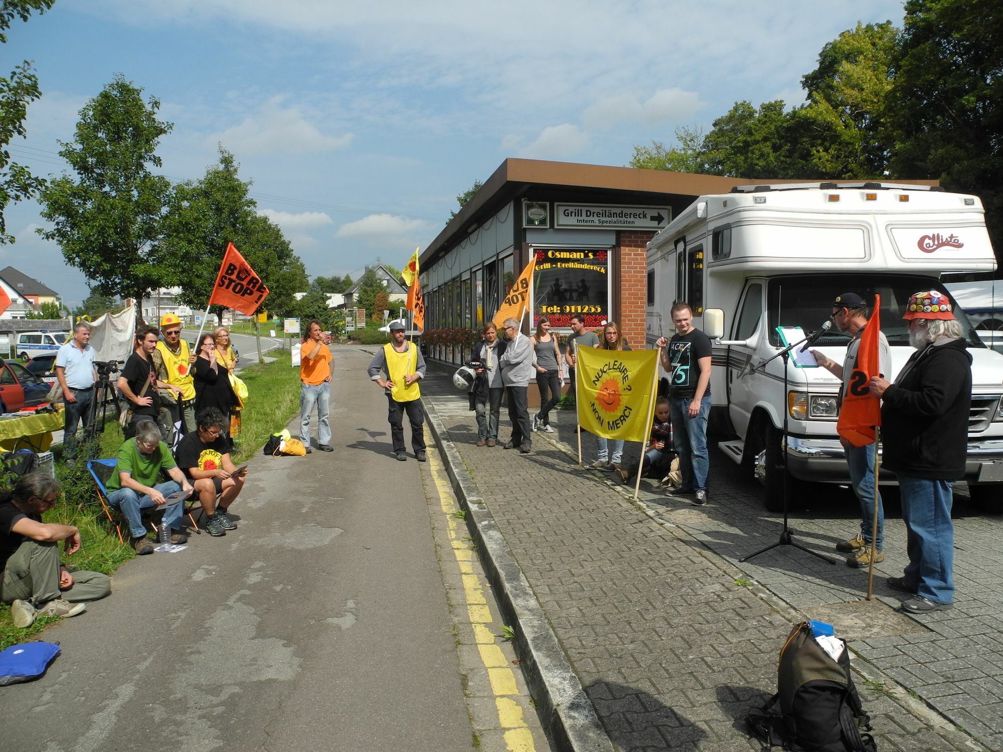 Die Mahnwache der 35 Aktivisten aus Deutschland, Luxemburg und Frankreich fand zeitgleich mit weiteren Kundgebungen an der gesamten Strecke statt und war der Auftakt der europaweiten Aktionstage gegen Urantransporte.