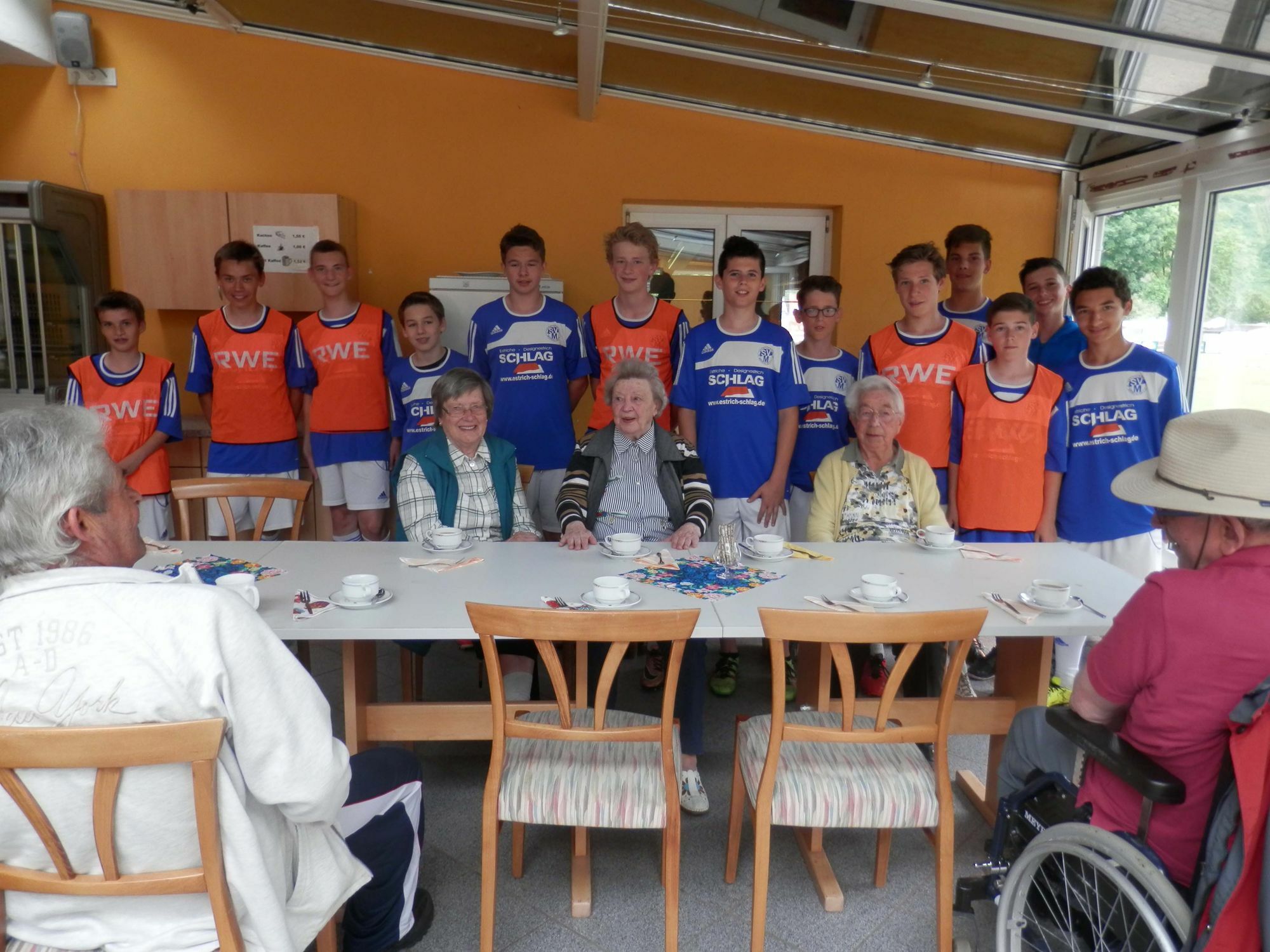 Für noch bessere Stimmung sorgten die Jugendfußballer selbst. Mit Fröhlichkeit und Offenheit wurde jeder Bewohner persönlich begrüßt. Dank der liebevollen Betreuung und Unterstützung durch das Heimpersonal wurde es ein äußerst vergnüglicher Nachmittag.