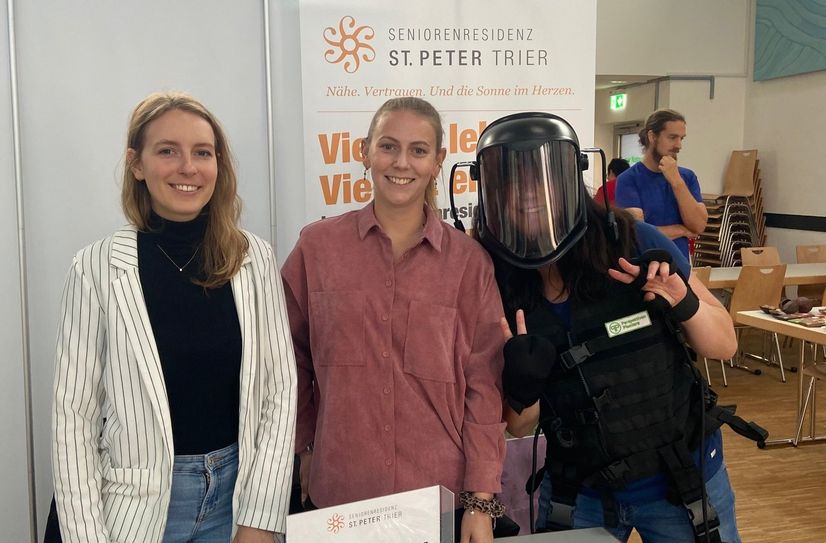 Im großen Saal präsentieren zahlreiche Institutionen ihre Angebote. Dazu gehören unter anderem das Deutsche Rote Kreuz, die Johanniter, das WZ-Wundzentrum, die Verbraucherzentrale, die Agentur für Haushaltshilfe, Frau und Beruf Palais, der Sozialverband VdK sowie die Selbsthilfekontaktstelle SEKIS. Besucherinnen und Besucher können unter anderem Blutdruck messen lassen, sich über Pflegeangebote informieren, einen Alterssimulationsanzug testen oder am Glücksrad drehen.