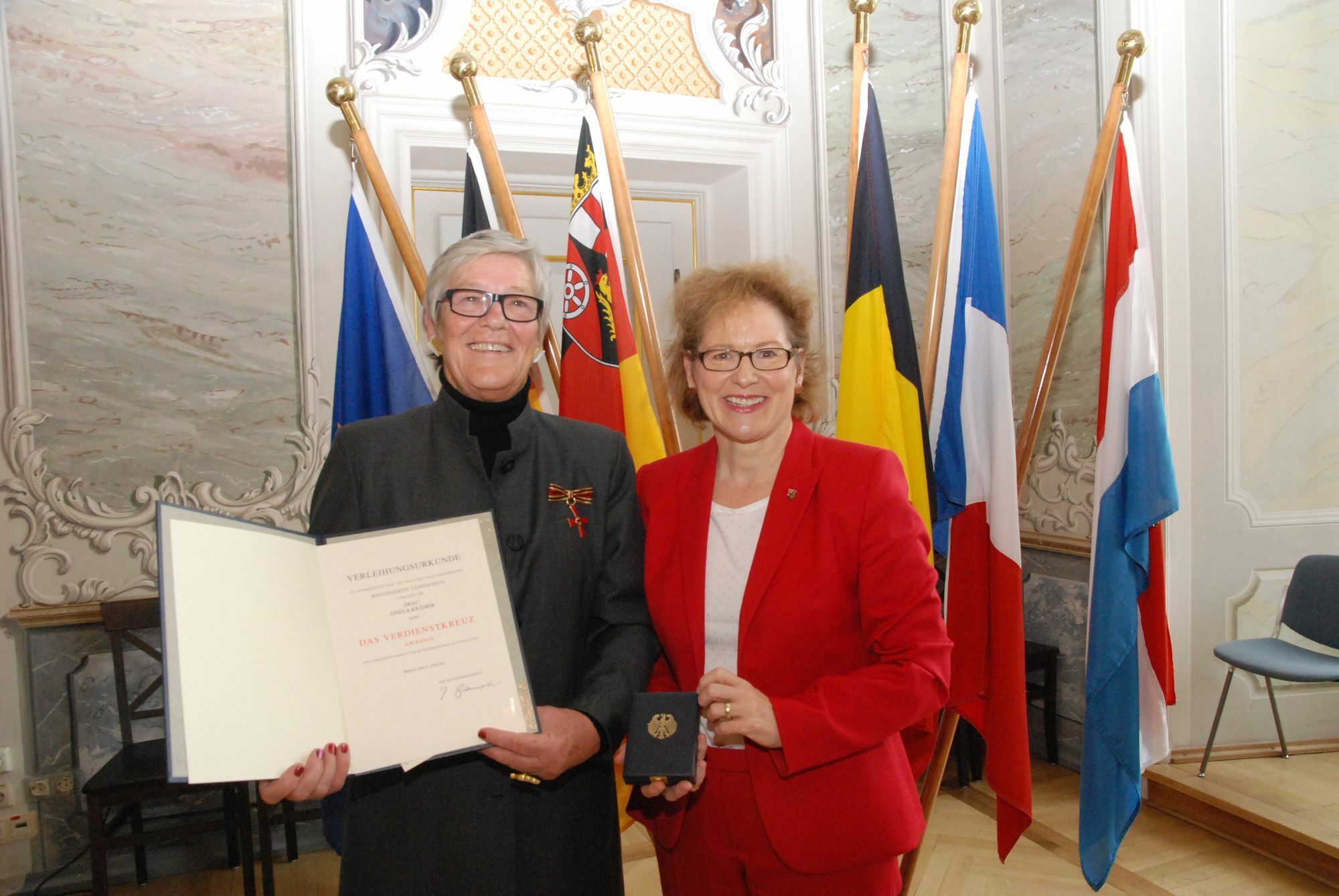 Stellvertretend für die rheinland-pfälzische Ministerpräsidentin Malu Dreyer überreichte die Präsidentin der Aufsichts- und Dienstleistungsdirektion (ADD), Dagmar Barzen, kürzlich der Konzerin Gisela Krämer das Bundesverdienstkreuz am Bande des Verdienstordens der Bundesrepublik Deutschland. Die Ministerpräsidentin ehrte damit auf Initiative des Landtagsabgeordneten Bernhard Henter (CDU) insbesondere das langjährige ehrenamtliche Engagement der 70-Jährigen in den Bereichen Kommunalpolitik und Integration.