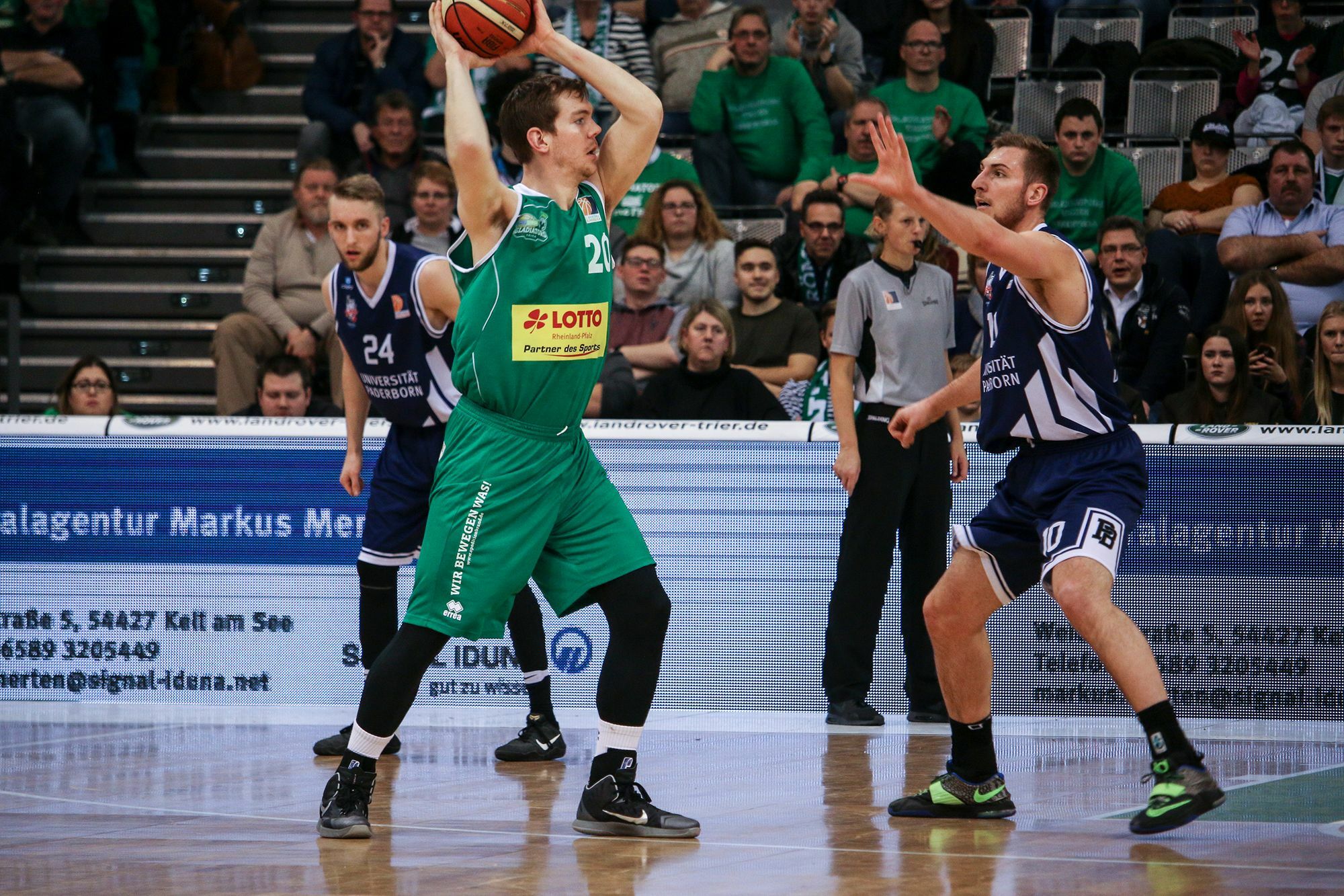 Auf dem angestrebten Weg besteht jetzt ein gewisses positives Faktum erst zum zweiten Mal in dieser Saison und erstmals seit dem 8. Oktober: zwei Siege mehr als Niederlagen. Apropos: Die Paderborner wollten unbedingt ihre fünfte Niederlage in Folge vermeiden. Das ging schief - und die Oberhand im Direktvergleich mit Trier stellte da natürlich keinen Trost dar. Zumal man auch bei den vier Malen zuvor jeweils mit nur einstelliger Differenz verloren hatte. Der Lichtblick am Freitag, dem 13., lag nahe: Die Westfalen führten nach einem 10:20-Start unter anderem mit 66:63, obwohl ihr bester Akteur in den letzten Minuten wegen seines fünften Fouls fehlte - eine Tatsache, die Sieger-Trainer Marco van den Berg extra erwähnte.