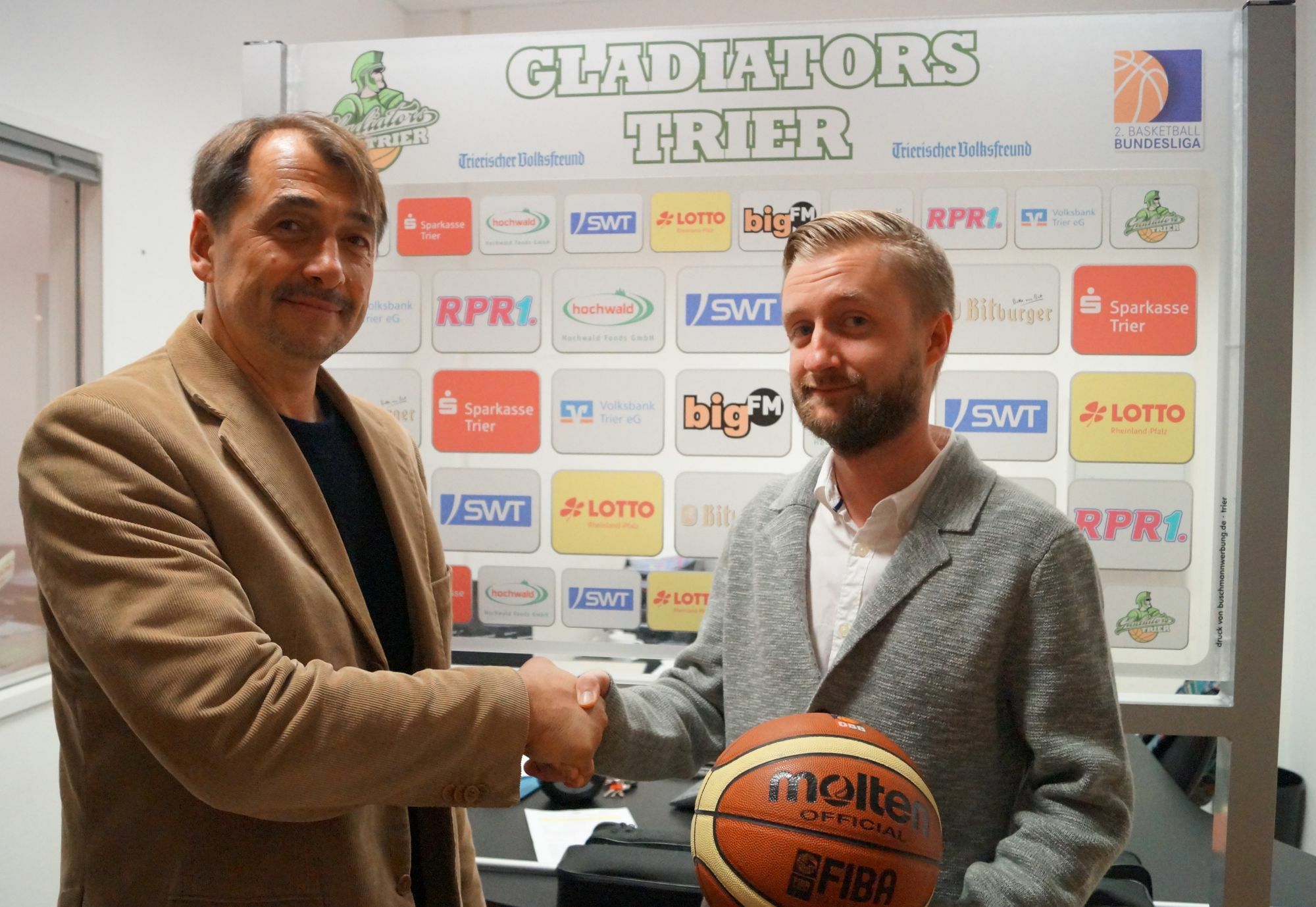 Auch Gladiators-Manager Michael Lang (links) sieht die Kooperation mit den Rollstuhl-Basketballern positiv: "Wir hoffen, dass wir durch den gemeinsamen Weg mit den Dolphins mehr Menschen für den Basketball in Trier begeistern können", erklärt Lang. Die Kombitickets können ausschließlich an der Tageskasse der Dolphins erworben werden und gelten beim Spiel der Gladiators in der Sitzplatzkategorie 4. Die Kosten für den Doppelspieltag belaufen sich dann auf 15 Euro für Erwachsene, 10 Euro für die ermäßigte Karte und 6 Euro für Kinder unter 14 Jahren. Tip-Off der Dolphins ist um 16 Uhr. Die Gladiators spielen im Anschluss um 20 Uhr.