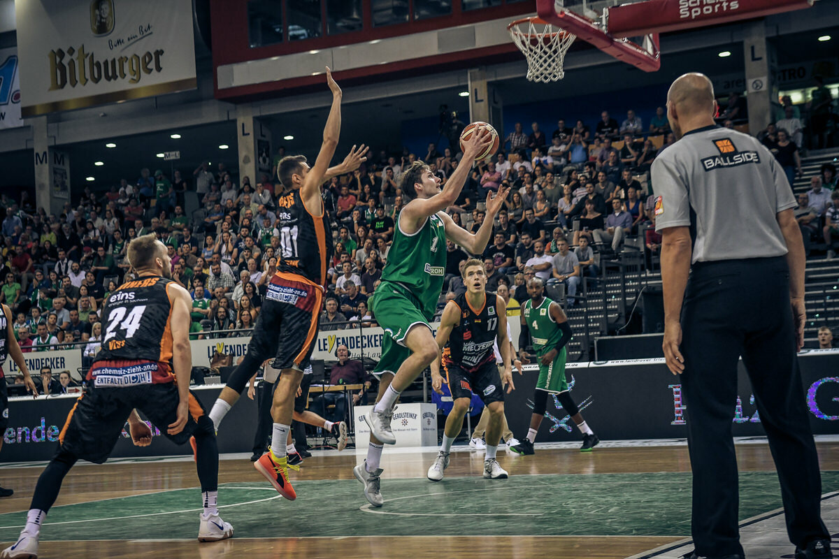 Die Gladiators warteten mit spektakulären Personalien auf: Wegen der langfristigen Fußverletzung bei Kyle Dranginis wurde kurzfristig Kelvin Lewis engagiert. Dranginis hatte im September 2017 mit sensationellen 60 Korbpunkten schon in seinen ersten beiden Spielen verblüfft, Lewis war noch nicht im Tageskader. Dafür aber erstmals Till Gloger. Der 25-Jährige demonstrierte prima Durchsetzungsvermögen unterm Korb, unter anderem, als Topscorer Johannes Joos wegen einer leichten Verletzung in der 24. Minute für eine Weile ausfiel.