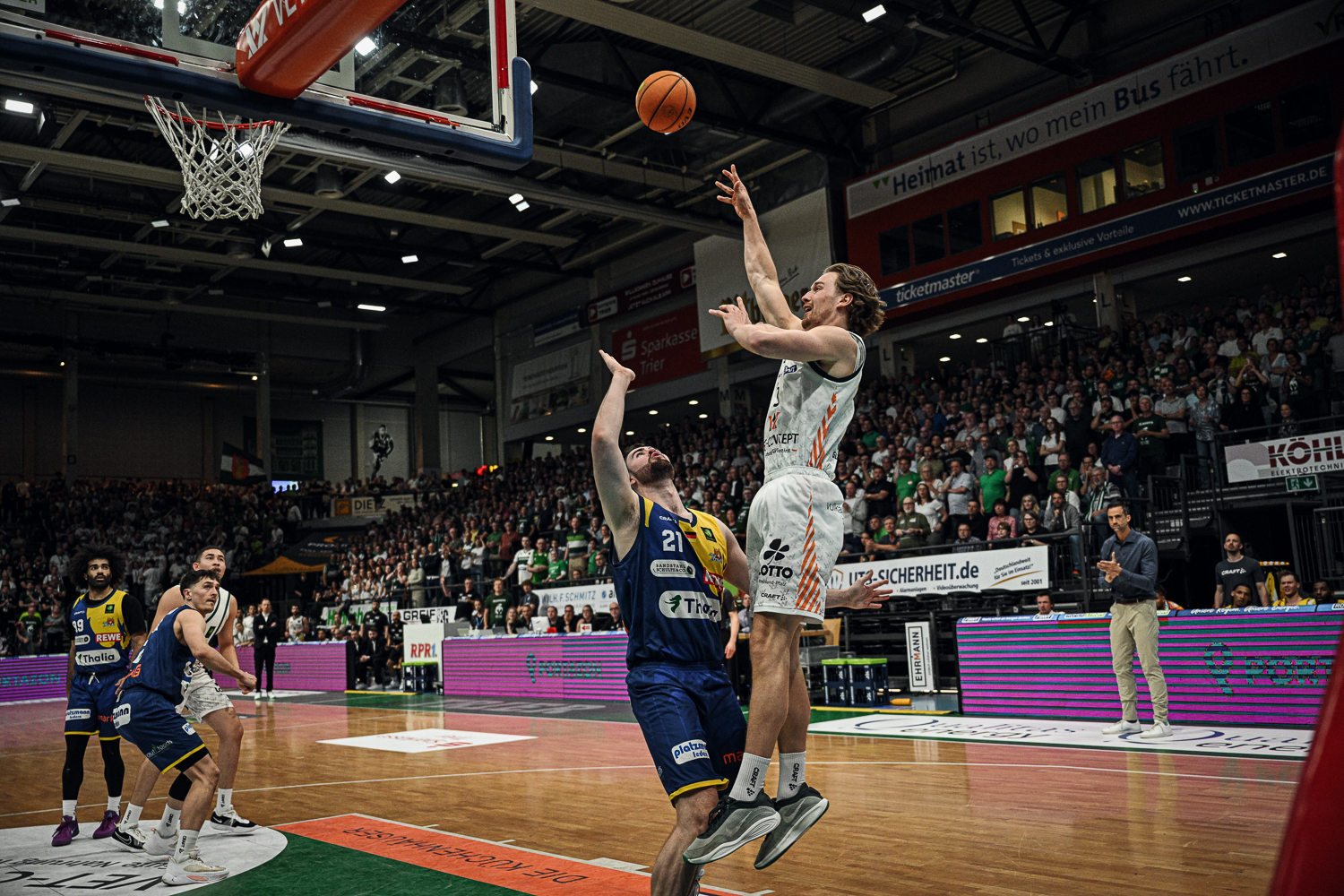 Auch zum Start in den letzten Spielabschnitt gelang es den Hagenern sich über Offensivrebounds nach Fehlwürfen zweite Chancen zu generieren. Trotzdem stand die Trierer Defensive stabil und man hielt die Hagener Wurfquoten aus der Distanz niedrig. Clayton Guillozet sorgte dann von der Freiwurflinie für die zweistellige Trierer Führung von 74:63 bei knapp sieben Minuten Restzeit auf der Spieluhr. Guillozet war es dann auch, der mit zwei getroffenen Dreiern in Folge für die 82:65 Führung und damit die Vorentscheidung fünf Minuten vor Spielende sorgte. Zwar konnten die Hagener den Rückstand ihrerseits noch einmal verkürzen, jedoch nicht mehr entscheidend in das Spielgeschehen eingreifen. Die Gladiatoren ihrerseits spielten die Uhr clever herunter und sicherten sich so mit 87:74 den letztlich verdienten Heimsieg im ersten Playoff-Halbfinalspiel gegen Phoenix Hagen. Spiel Zwei und damit das erste Auswärtsspiel der Serie findet am Samstag um 19:30 Uhr in der Ischelandhalle. Für alle Fans, die die Gladiatoren nicht zum Traditionsduell nach Hagen begleiten können gibt es wie immer den kostenlosen Livestream bei Sportdeutschland.tv.