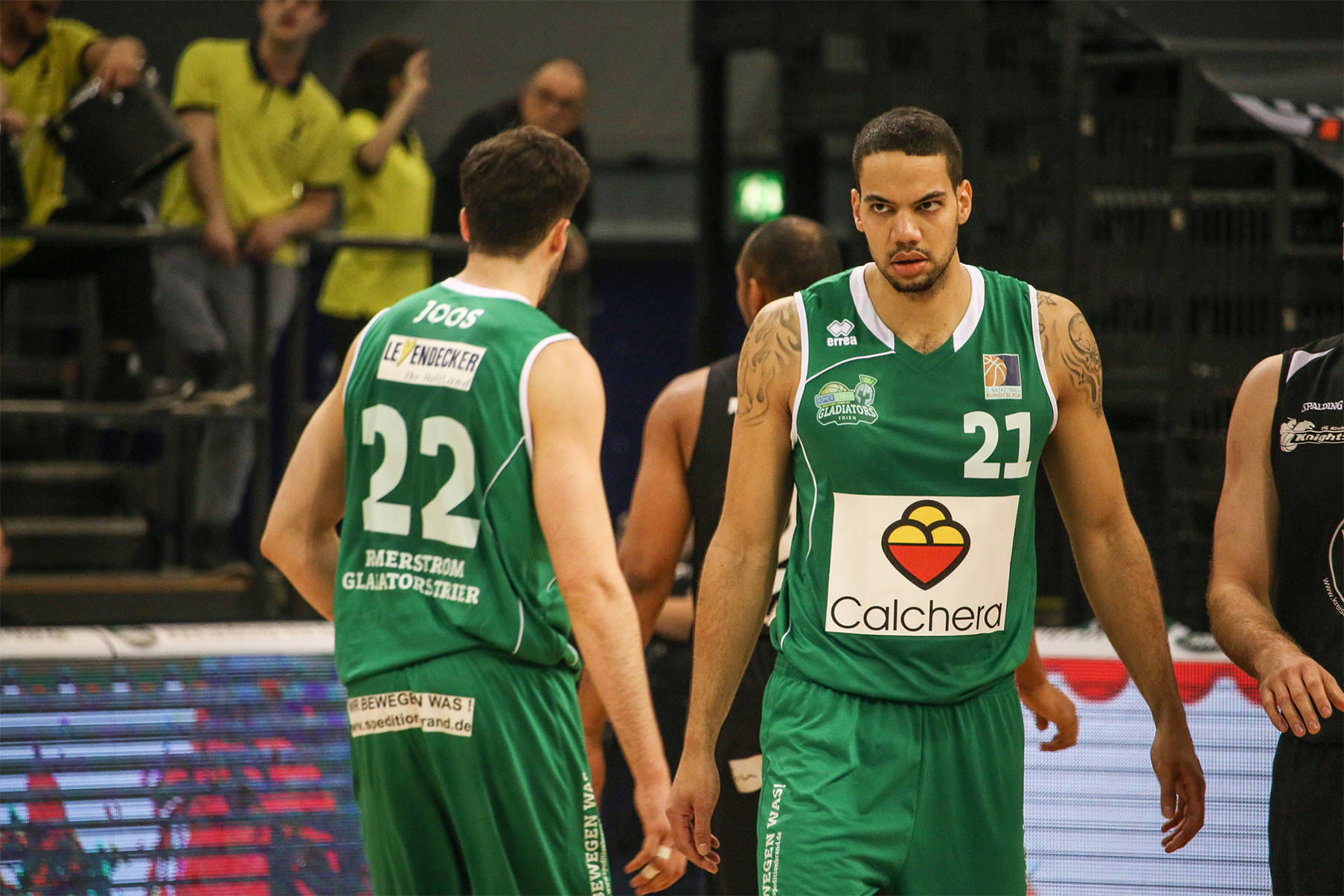 Jack Eggleston stieß im November 2015 zum Team um Cheftrainer Marco van den Berg und wusste von Beginn an von sich zu überzeugen. Durch kontinuierlich starke Leistungen reifte der US-Amerikaner zu einer unumstrittenen Größe im Kreis der Gladiatoren und zählte in der Arena Trier zu den beliebtesten Akteuren auf Seiten der Moselaner. Nach zwei Jahren und insgesamt 46 Pflichtspielen für die Römerstädter wurde das zum Saisonende auslaufende Arbeitspapier des 28-Jährigen nun nicht mehr verlängert. Van Zegeren und Coro verlassen Verein ebenfalls Ebenso wie Eggleston werden auch Joey van Zegeren und Pablo Coro in der kommenden Spielzeit nicht mehr für die "Boys in Green" auf dem Parkett stehen. Van Zegeren kam zu Beginn der vergangenen Hauptrunde als Tryout-Spieler nach Trier und konnte sich - trotz verletzungsbedingter Anlaufschwierigkeiten - als Center im Aufgebot des diesjährigen Playoff-Viertelfinalisten etablieren. Vor allem in der Defensive wusste der gebürtige Niederländer von sich zu überzeugen. Für welchen Verein Joey van Zegeren in Zukunft auflaufen wird, steht zum jetzigen Zeitpunkt noch nicht fest. Wie auch bei Pablo Coro, der den Verein ebenfalls verlässt. Der Chilene mit kroatischem Pass wechselte im Sommer 2016 an die Mosel und erlitt bereits in der Saisonvorbereitung eine Schulterverletzung, die den 27-Jährigen über mehrere Monate hinweg am Leistungssport hinderte. Die RÖMERSTROM Gladiators bedanken sich bei allen drei Akteuren für die erbrachten Leistungen in den vergangenen Monaten und wünschen ihnen alles Gute für ihre private und sportliche Zukunft.