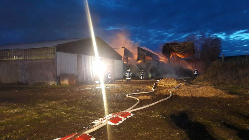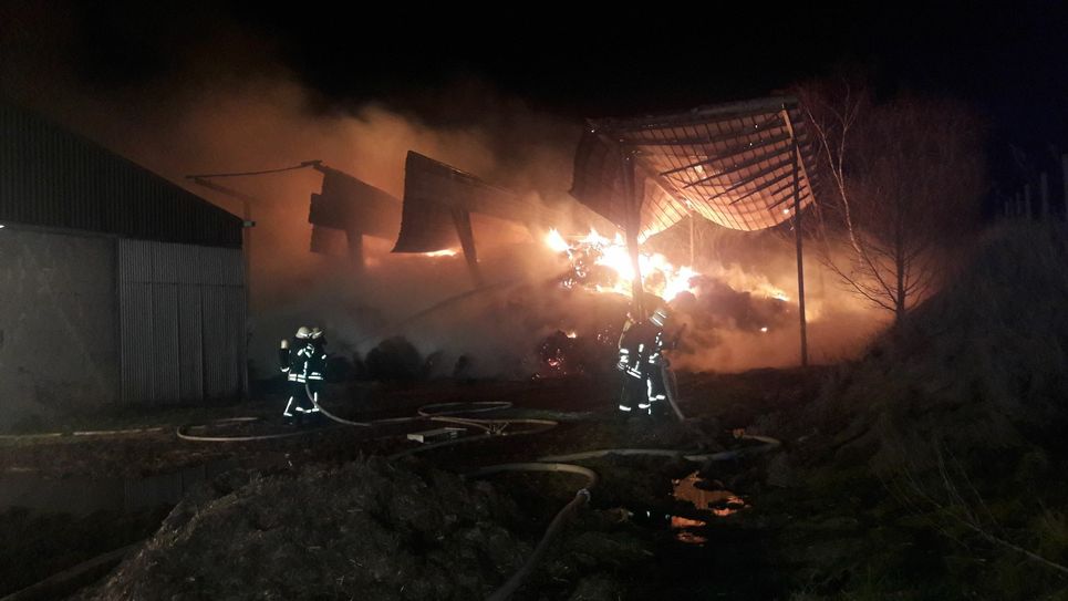 In dieser Lagerhalle waren nach Informationen des Eigentümers, einem Luxemburger, rund 250 Ballen Stroh in Flammen auf gegangen. Da der Hof nur über eine kleine Zisterne verfügt, mussten die Feuerwehren eine mehr als 200 Meter lange Wasserversorgung aufbauen und das Wasser mit mehreren Tankwagen aus dem nahen Franzenheim zur Brandstelle befördern. Neben der Halle steht ein Stall, in dem rund 80 Kühe und Kälber untergebracht sind. Nach Angaben der Feuerwehr bestand zu keiner Zeit eine Gefahr für die Tiere, die unter anderem von dem Besitzer und der Feuerwehr betreut wurden.