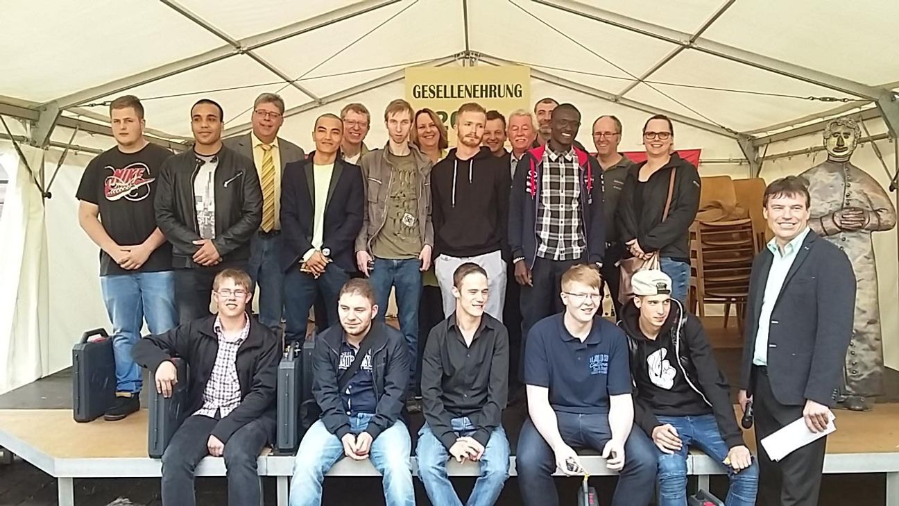 Präsente für die neuen Fachkräfte überreichte Pater Meinolf von Spee. Der zweite Kernpunkt des Festakts war die Auszeichnung durch Gunnar Nau, Vorsitzender des Vereins "Manus Adjuvans", ein Verein, welcher Jugendliche der Berufsbildenden Schulen unterstützt und mit Preisen ausstattet. Hier wurden das Sozialverhalten, das Leistungsvermögen sowie die Notensteigerung beurteilt. Die drei Preise pro Kategorie wurden von Herrn Nau und dem Leiter der Berufsschule, Hans-Georg Will an die neun besten Schüler ausgehändigt. "Wir sind richtig stolz auf unsere Auszubildenden, denn 15 zur Gesellenprüfung gemeldete Auszubildende haben ihr Ziel erreicht", sagte Ausbildungsleiter Wolfgang Marx. Sein besonderer Dank galt den Ausbildern sowie den Berufschullehrern, die bei der Ausbildung ihr Wissen an die Jugendlichen vermittelt haben. Einrichtungsleiterin Sieglinde Schmitz und Herr Joachim Wagner von der Arbeitsagentur Trier schlossen sich in ihren Grußworten dem Dank für die besonderen Leistungen an.