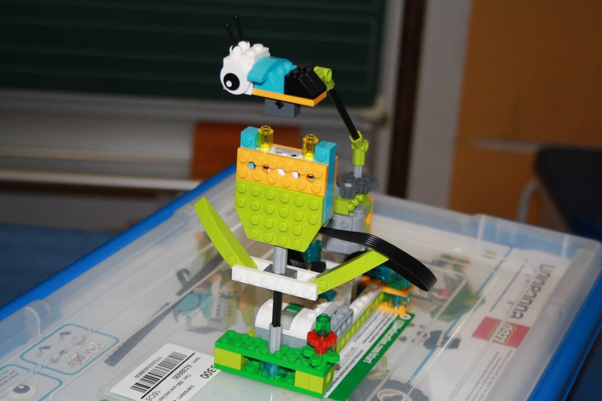 Sobald die schuleigenen Tablets angeschafft sind, legen die Kinder auch im Unterricht los. Am Tag der offenen Tür konnten sie aber bereits auf die Baukästen zurückgreifen: Eine Projektgruppe hatte sich mit dem Thema Bienen auseinander gesetzt und eine kleine Bestäubungsmaschine gebaut und programmiert.
