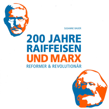 Passend hierzu und das Thema vertiefend hat die Volksbank im Jubiläumsjahr der beiden großen Persönlichkeiten des 19. Jahrunderts das Buch "200 Jahre Raiffeisen und Marx" Reformer & Revolutionär, von Susanne Bauer herausgegeben (siehe Foto).