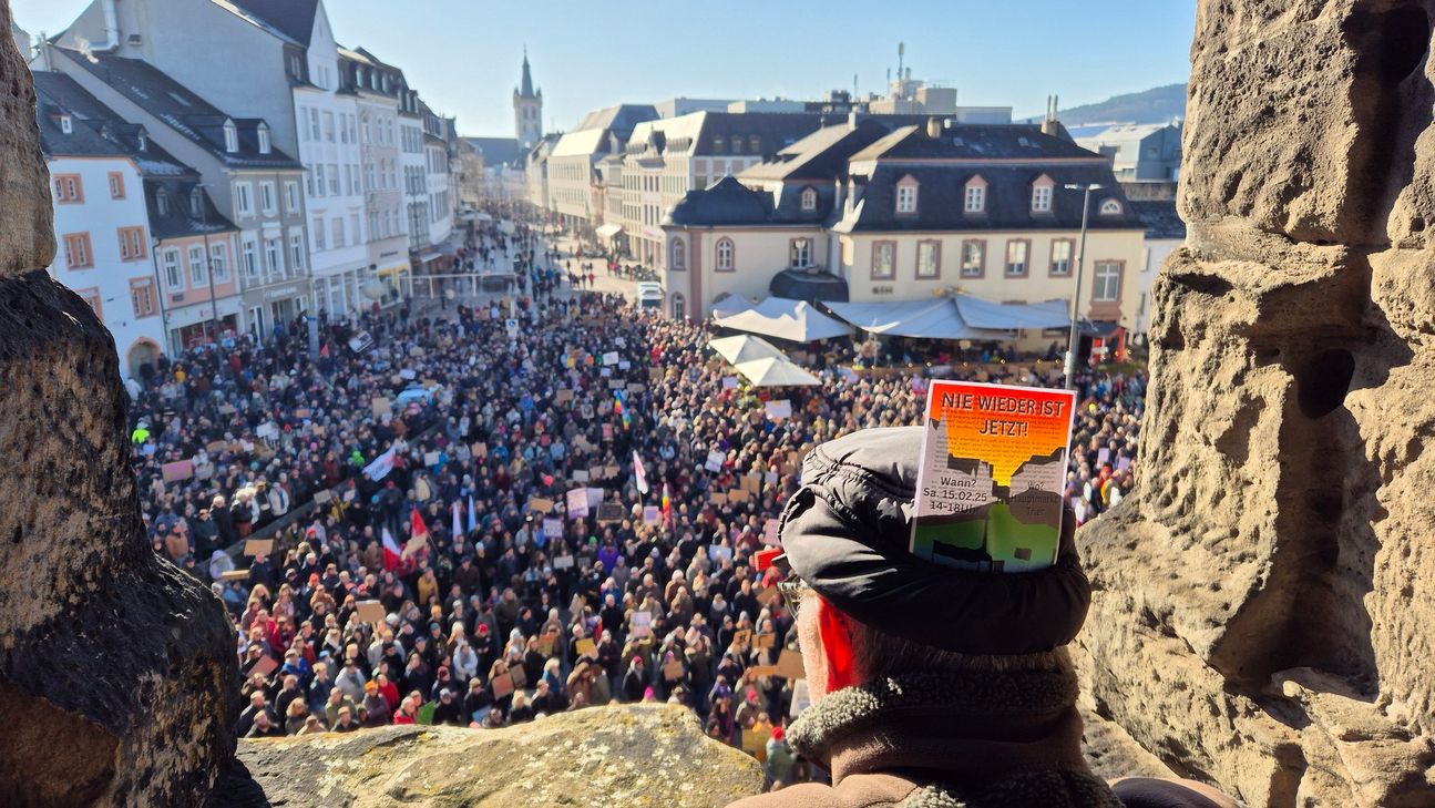 Die Bündnisse "AG Frieden Trier", "Für ein buntes Trier, gemeinsam gegen Rechts", "Multikulturelles Zentrum Trier" und "Trier für alle" haben innerhalb kürzester Zeit zu einer großen Kundgebung an der Porta Nigra aufgerufen. Unter dem Motto "Wir sind die Brandmauer- Gegen jede Zusammenarbeit mit Rechtsextremen!" sind laut Veranstalter bis zu 5.000 Menschen zusammengekommen.