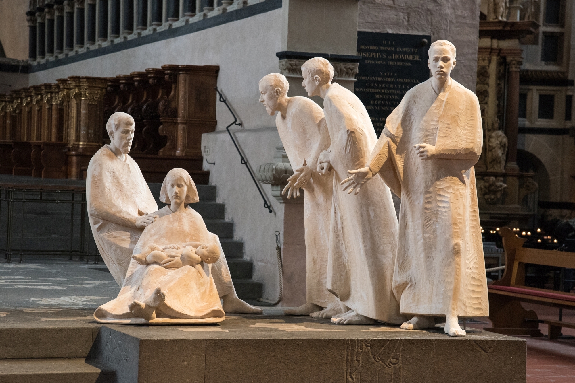 "Sein Ziel war es, eine zeitgemäße Darstellung zu schaffen, die die Sprache und die Werte unserer heutigen Gesellschaft widerspiegeln", erklärt Dompropst Weihbischof Jörg Peters. Der Ausgangspunkt aller Überlegungen sei gewesen, mit der Krippe das Festgeheimnis von Weihnachten ansprechend darzustellen, und für die Menschen, die den Dom aufsuchen, zu erschließen.