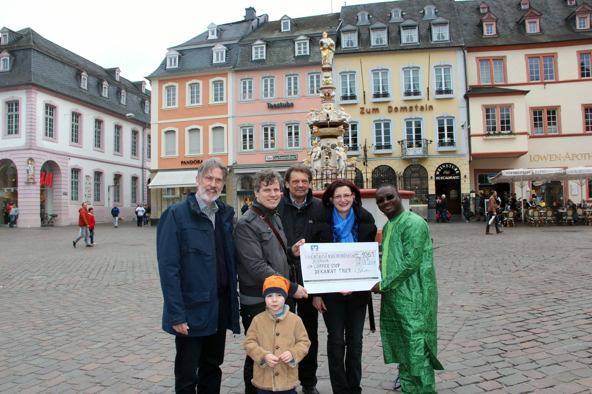 Vor gut zwei Wochen standen sie auf dem Trierer Hauptmarkt, um mit dem Misereor Coffee Stop auf die Projekte und Anliegen des Hilfswerks für Entwicklungszusammenarbeit aufmerksam zu machen – nun haben Eva Schneider und Andreas Matt vom Netzwerk Weltkirche im Dekanat Trier einen Scheck über 1.061 Euro an MISEREOR überreicht.