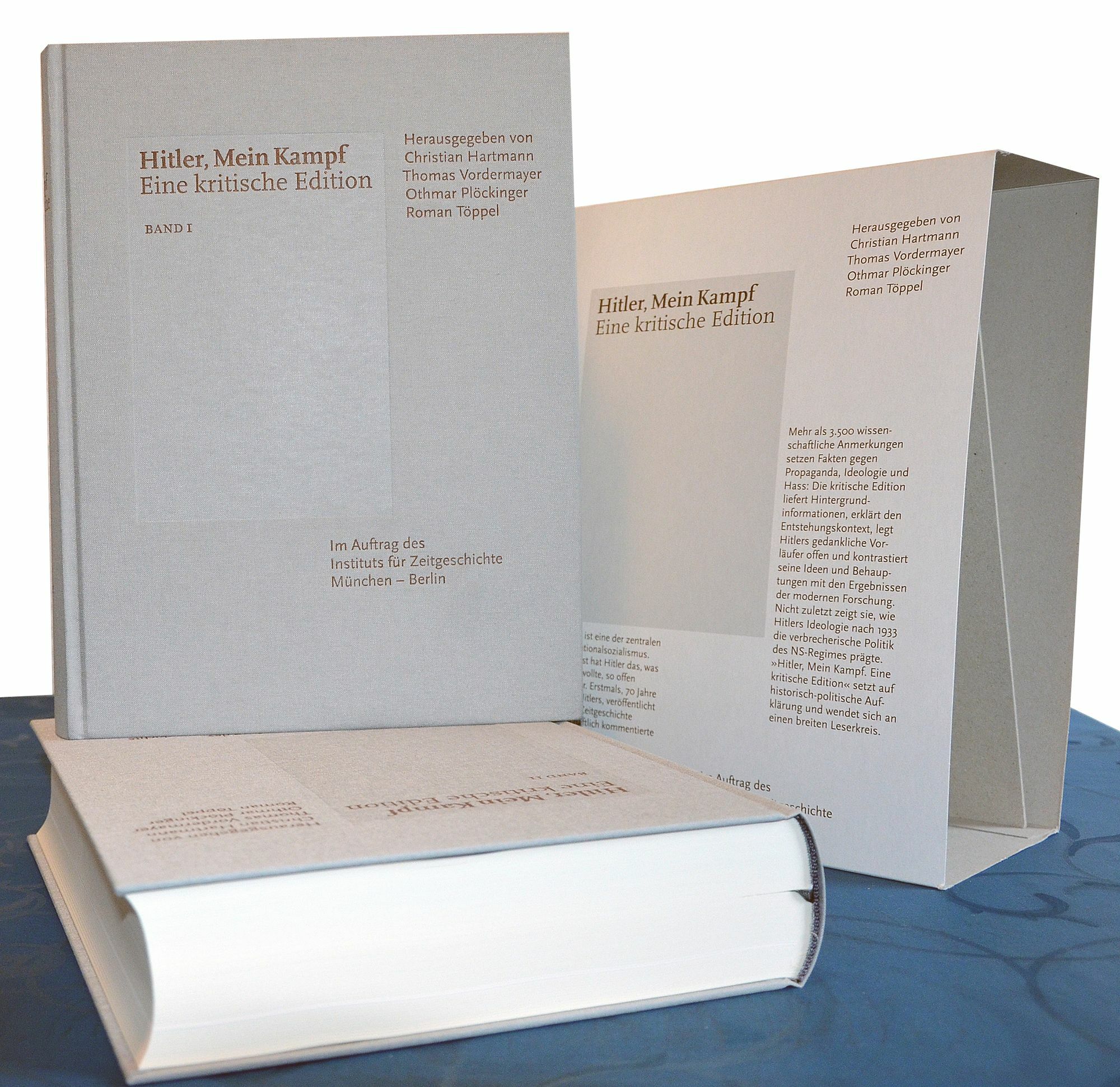 "Mein Kampf" ist Hitlers wichtigste politische Schrift. Sie entstand in den Jahren 1924 bis 1926 in zwei Bänden während Hitlers Haftzeit in Landsberg am Lech und nach seiner Haftentlassung. Bis 1945 wurde "Mein Kampf" in 18 Sprachen übersetzt und über zwölf Millionen Mal verkauft. Nach dem Selbstmord Hitlers übertrugen die Siegermächte die Rechte am Buch dem Freistaat Bayern. Die Bayerische Staatsregierung nutzte das Urheberrecht, um in der Folge Neuauflagen zu verhindern. Mit dem Erlöschen des Urheberrechts 70 Jahre nach Hitlers Tod stand dieses juristische Instrument aber ab 2016 nicht mehr zur Verfügung. Daher die Herausgabe der kritischen Edition durch das IfZ. Hitler "Mein Kampf - Eine krititsche Edition"; herausgegeben im Auftrag des IfZ München - Berlin von Chritian Hartmann, Thomas Vordermayer, Othmar Plöckinger, Roman Töppel; 2 Bände; 1.948 Seiten mit mehr als 3.500 wissenschaftlichen Anmerkungen; 59 Euro; ISBN: 978-3-9814052-3-1; Bezug: im Buchhandel.