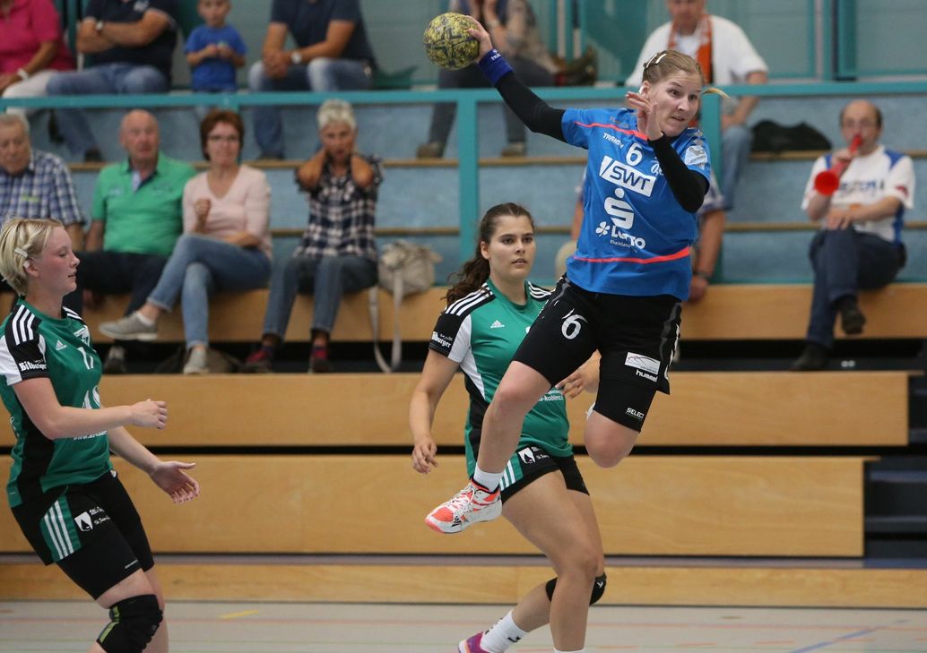 Gegen aufopferungsvoll kämpfende Gastgeber konnte in der zweiten Halbzeit die Führung weiter ausgebaut werden und nachdem sich alle eingesetzten Feldspielerinnen in die Torschützenliste eintragen konnten ging das Spiel über 22:14 zum 33:18-Endstand. Die Neuzugänge konnten sich dabei gut integrieren und ihre ersten Erfolge bei den Miezen feiern. Samstag, 10. September, 19.30 Uhr, empfangen die Miezen zum ersten Rundenspiel die SGH Rosengarten - BW Buchholz in der Arena Trier ( Fotos: Jürgen Brech )