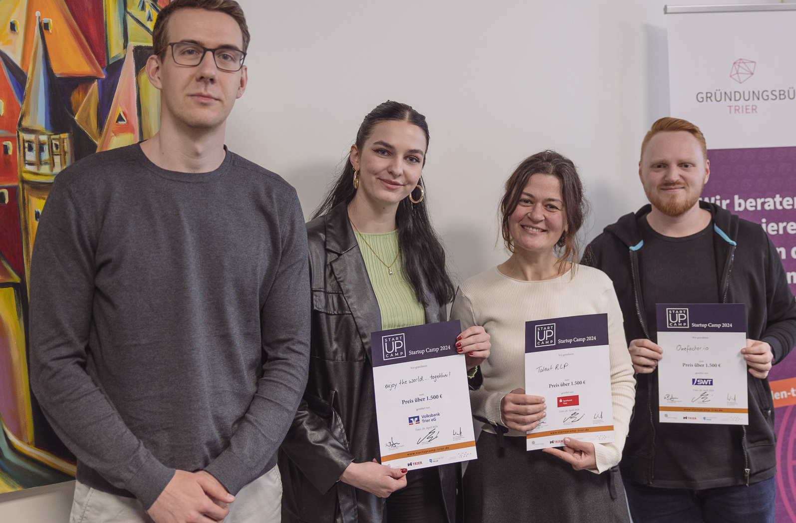 Die drei Geldpreise wurden von Sparkasse Trier, Volksbank Trier eG und den Stadtwerken Trier (SWT) gestiftet. Durch das gemeinsame Engagement der regionalen Gründungsunterstützer konnte auch im Jahr 2024 eine erfolgreiche Veranstaltung durchgeführt werden. Auch nach dem Startup Camp werden die Nachwuchsgründerinnen und -gründer vom gemeinsamen Gründungsbüro der Hochschule und Universität Trier, der Wirtschaftsförderung oder den Kammern jederzeit weiterhin unterstützt. Die Planungen für Startup Camp 2025 laufen bereits.