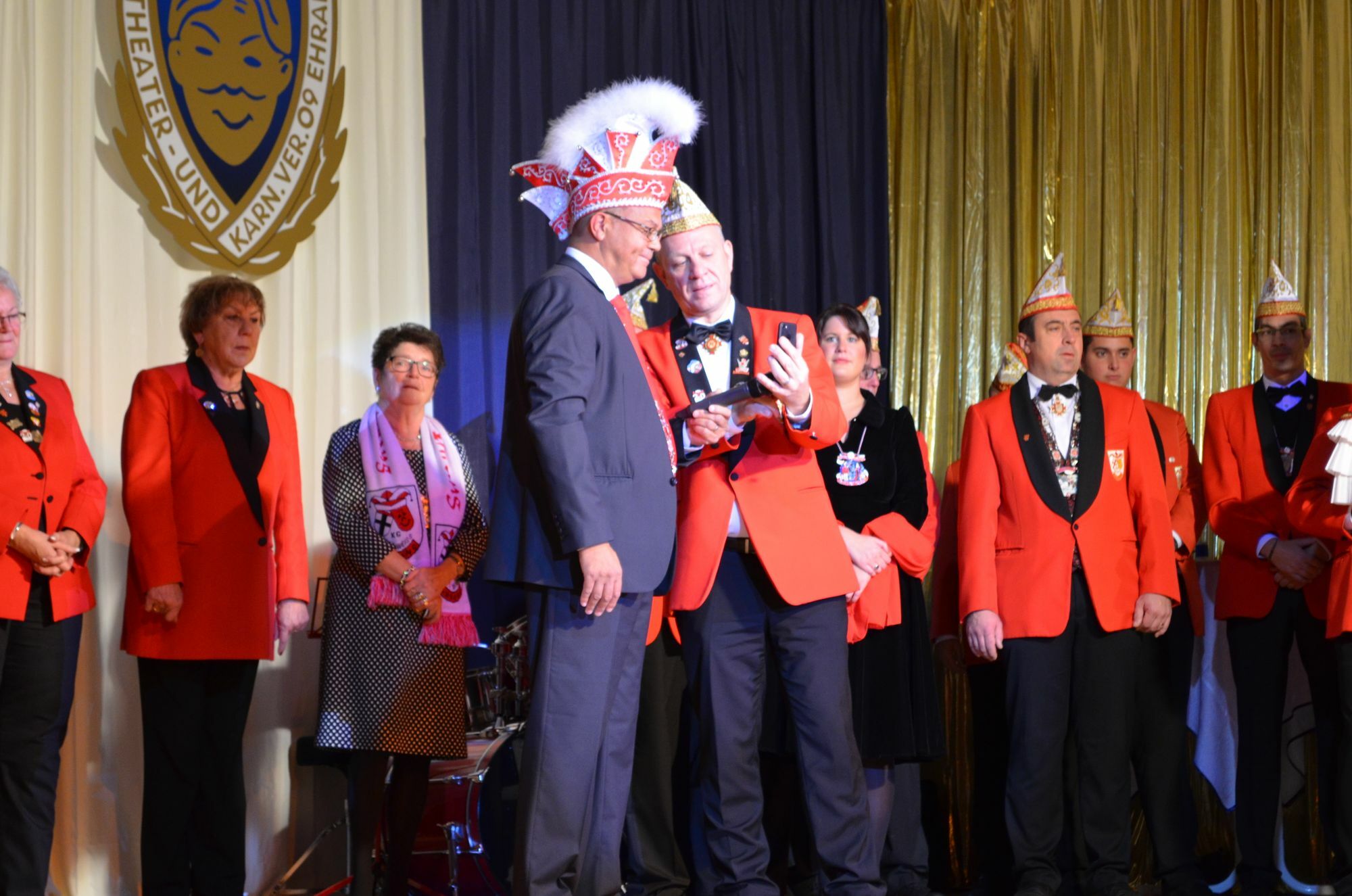 Am Samstag hatte das Prinzenpaar Prinz Johannes I. (54) und Prinzessin Gaby II. (53) seinen ersten offiziellen Auftritt. Doch bevor das Paar die Bühne betrat, wurde das alte Prinzenpaar, Andrew I. und Charnae I. der Karnevalsgesellschaft Rot-Weiß Ehrang 1952, verabschiedet. Da Charnae I. an diesem Tag nicht anwesend sein konnte, ließ sie den Gästen eine Sprachnachricht per Handy zukommen.