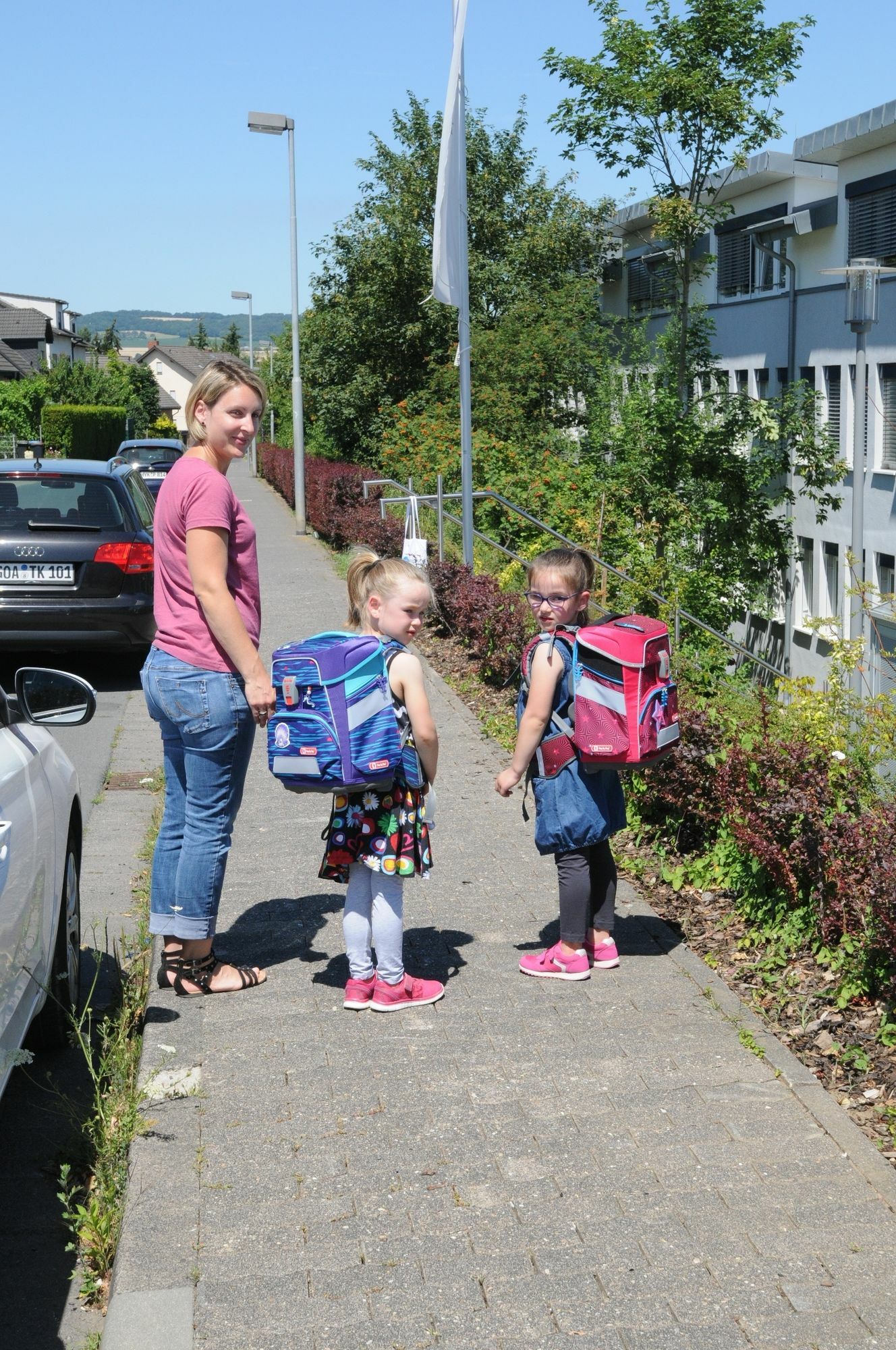 Beim gemeinsamen Schulwegtraining sollte man den Kindern auch erklären, dass sie auf der Innenseite des Bürgersteigs sicherer sind. Foto: Unfallkasse