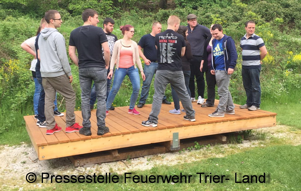 Am Freitagabend plante man gemeinsam das erste. VG-Zeltlager, das diesen Sommer in Igel stattfindet. Im Einzelnen ging man auf das Programm, die Finanzierung und die Infrastruktur ein um sich so Best möglichst auf das Zeltlager vorbereiten zu können. Themen am Samstag waren der richtige Umgang mit Jugendlichen, Teampädagogik und die Gestaltung der Unterrichtseinheiten. Hierfür wurde Michael Klein, ein externer Dozent der MBSK, beauftragt. Am Sonntag führte die Jugendpflegerin der VG Trier-Land, Angela Wittmann, durch den Niedrigseilparcours in Kell am See. Ziel war es, die Zusammenarbeit untereinander zu stärken und die Kommunikationsfähigkeit zu trainieren. Zum Schluss des Wochenendes bedankten sich der VG Jugendwart Sascha Heckmann und seine Stellvertreterin Carina Bach bei allen Teilnehmern sowie bei der Jugendpflegerin Angela Wittmann für die gute Zusammenarbeit und das schöne Wochenende. Ein wieder mal fantastisches und lehrreiches Wochenende für alle Beteiligten, das in diesem Maße einzigartig im Kreis Trier-Saarburg ist. Dieser Meinung waren auch Wehrleiter Jürgen Cordie und seine beiden Stellvertreter Ralf Kinzig und Andreas Bauer, die ebenfalls am Seminar teilnahmen und so auch ihre Unterstützung für die Jugendarbeit in der Jugendfeuerwehr zeigten. Pressemitteilung Feuerwehr Trier-Land