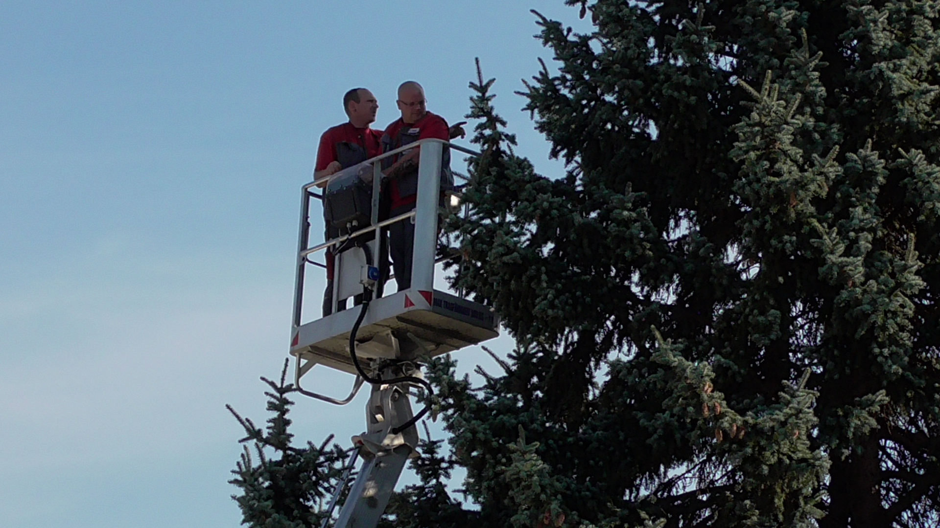 Am Donnerstagmorgen rollte dann die lang ersehnte Rettung an: Die Firma Seeger aus Trier kam mit einer Hebelbühne in den Garten. Dirk Tesch, Niederlassungsleiter der Firma Seeger, erzählte, dass eine Disponentin den Aufruf im Internet zur Rettung der Katze gelesen hatte. Für den Chef stand sofort fest, dass seine Firma eine Hebelbühne bereitstellt und "Paul" hilft. Zwei Mitarbeiter fuhren die Bühne bis auf die Höhe von "Paul" aus. Der war allerdings so vereängstigt, dass er auf die andere Seite des Baumes kletterte. Die Retter versuchten es deshalb auf der anderen Seite. Aber auch hier nahm "Paul" Reiauß. Kurz darauf stürzte er mehrere Meter ab, blieb aber unverletzt im Baum hängen. Die Retter beschlossen daraufhin, eine zweite Hebelbühen kommen zu lassen, um von beiden Seiten an die Katze zu kommen.