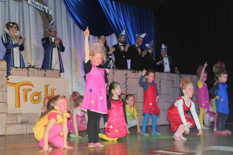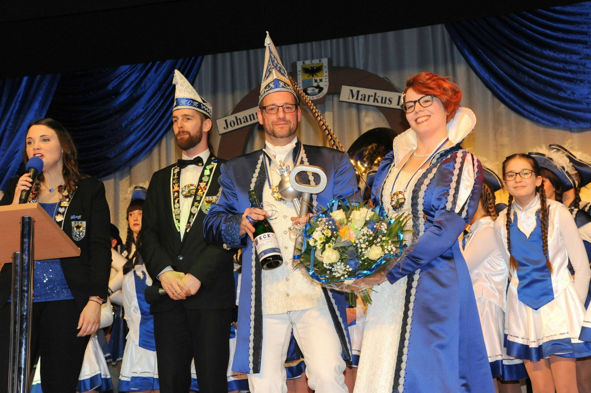 Verzaubert haben aber auch das kurz zuvor inthronisierte singende Kenner Prinzenpaar, Prinz Markus I. und Prinzessin Johanna I., und das neue Tanzpaar des KCK. Lana Funk und Tamo Lawen, trainiert von Tanja Gubin, präsentierten eine völlig neue Tanzdarbietung des KCK. Matthias Rohles, der mit Martina Junk durchs Programm führte, kündigte den KCK-Nachwuchs bewegt an. Doch alles lief perfekt bei der Premiere von Lana und Tamo. Entsprechend enthusiastisch applaudierte das Publikum, dessen Kenner "Radaus" für die beiden noch etwas kräftiger als sonst ausfielen. Ebenfalls bejubelt wurden weitere engagierte Tänzer: die der Kinder-, Jugend- und Prinzengarden, des Männerballetts, der Showtanzgruppe Märchenbuch und das Solo-Medley von Laura Simmer und Celina Drexler. Nach Büttenreden und Sketchen im Sinne des Sessions-Mottos "Bunt, bunter … Dorf mit K" unterhielt "Et Quant Orchester" mit Tanzmusik.