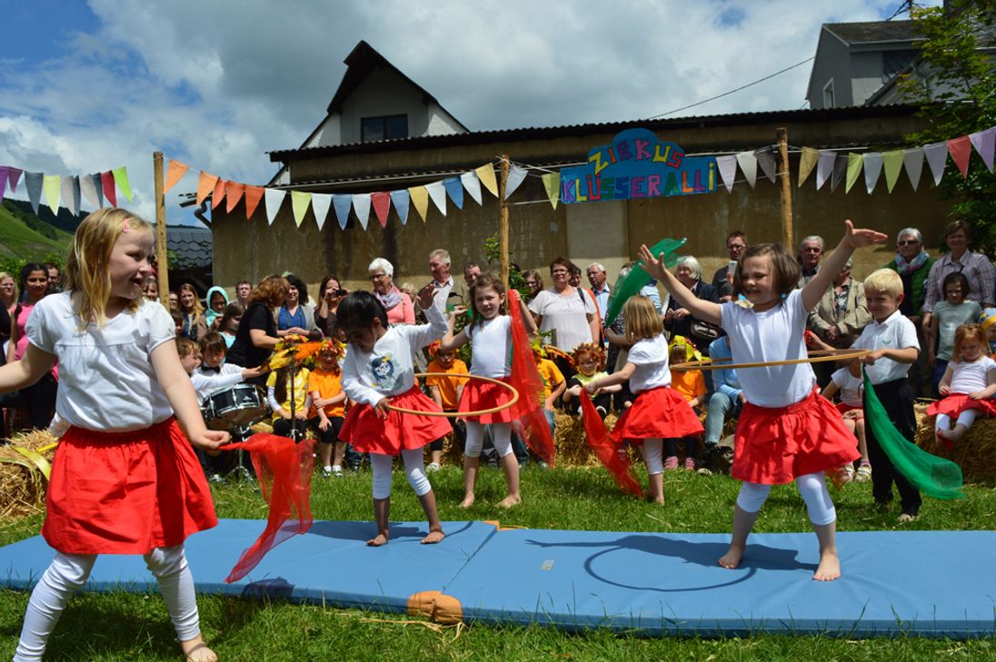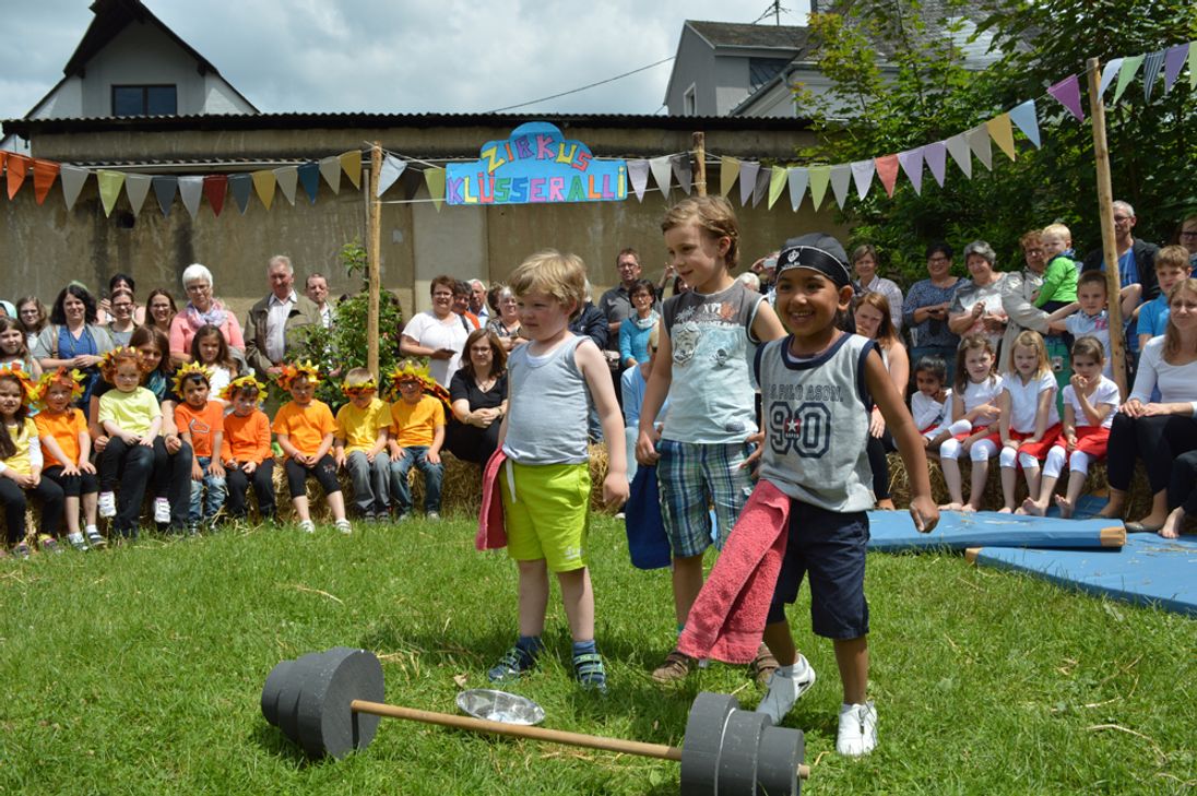 Begonnen wurde der Festtag mit dem von Pastor Michael Meiser gehaltenen Jubiläumsgottesdienst unter musikalischer Mitgestaltung der Kita-Kinder und einiger Eltern in der Pfarrkirche in Klüsserath. Nach Begrüßung der zahlreich erschienenen Gäste durch Vera Wolsfeld, Leiterin des Standortes Rosenkranzkönigin, folgten das Grußwort des Bürgermeisters der Gemeinde Klüsserath, Günther Herres sowie die Ansprache von Erich Bales als Vertreter der Verbandsgemeinde Schweich.Monika Kiwitt, Leiterin der Gesamteinrichtung Schweich, Bereich 1 der katholischen KiTa gGmbH Trier gab in ihrer Ansprache einen kurzen Rückblick auf die vergangenen 50 Jahre und dankte allen Beteiligten für Ihr Engagement in der Vergangenheit und in der Zukunft.