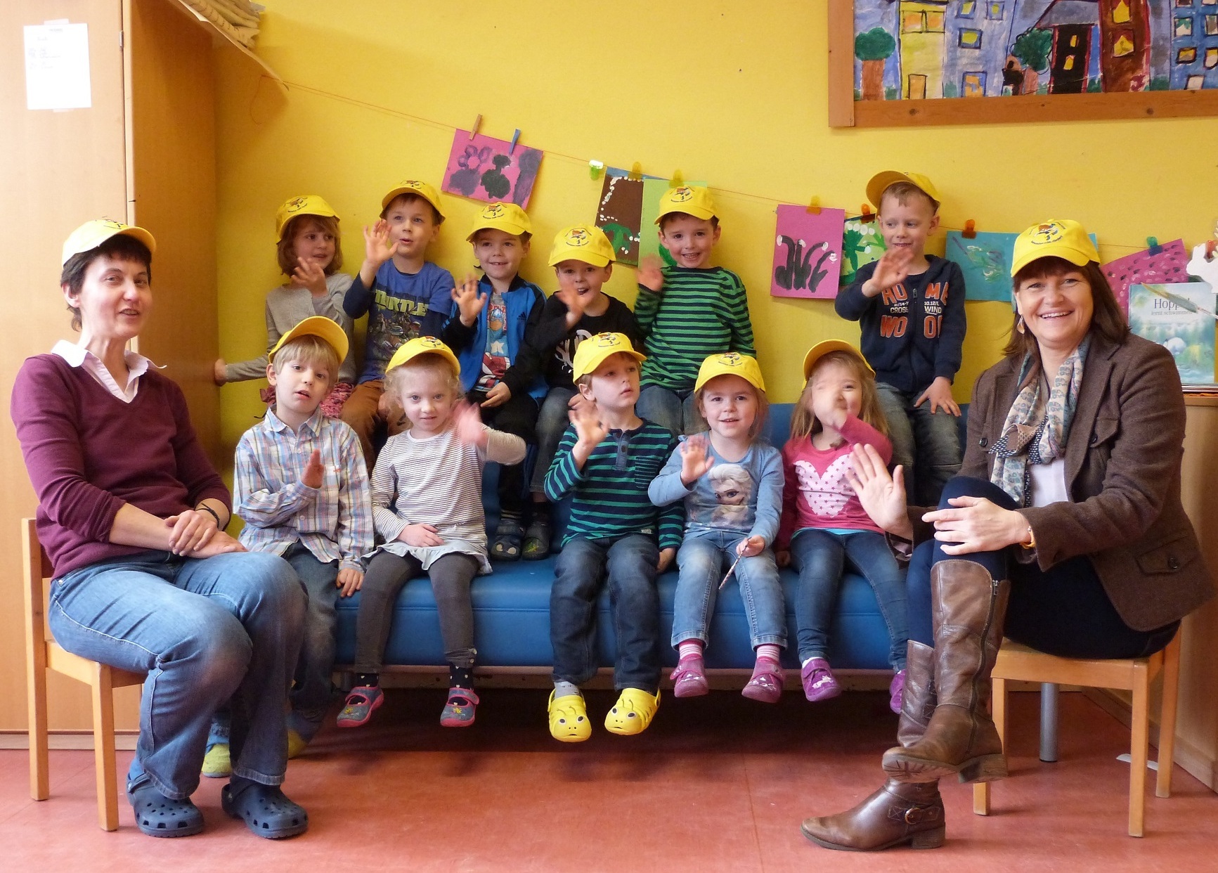 Kinder bei ihren Ausflügen sicherer machen, das will die Konzer-Doktor-Bürgerstiftung (KoDoBüSt) indem sie die Kindergärten in der Verbandsgemeinde Konz mit den leuchtend gelben Kodo Warnkappen ausstattet. Der Vorsitzende Hartmut Schwiering und Elke Steinmetz vom Stiftungsvorstand waren im März unterwegs, um die Warnkappen zu übergeben. Sowohl die Erwachsenen als auch die Kinder freuten sich über den Besuch und die neuen Warnkappen.