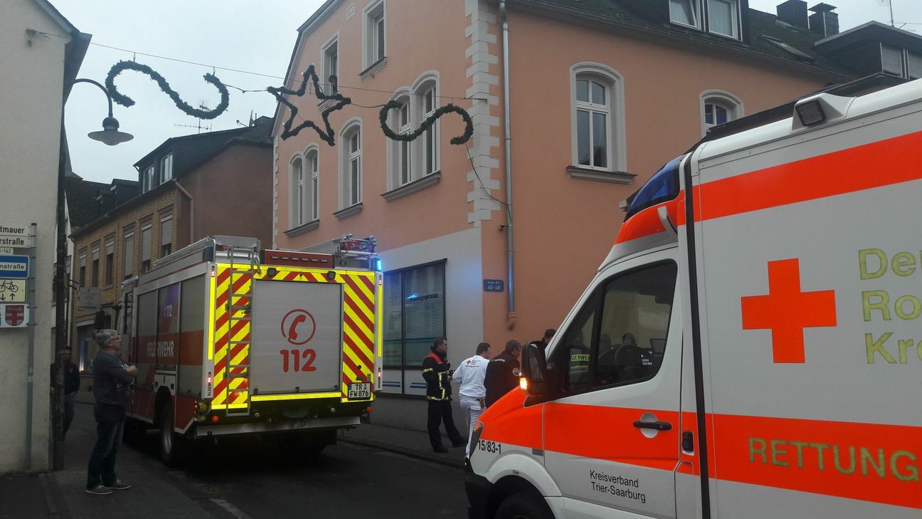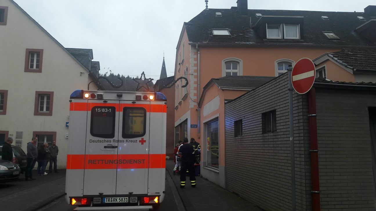 Aus bislang noch ungeklärter Ursache war ein etwa eineinhalb jähriges Kind aus dem ersten Stock eines Mehrfamilienhauses in der Niederstraße in die Einfahrt gestürzt. Das Kind hat nach Angaben der Rettungskräfte vor Ort wohl großes Glück gehabt und bei dem Sturz am Sonntag lediglich ein paar Schürfwunden davongetragen. Für weitere Untersuchungen wurde das Kind ins Krankenhaus gebracht. Warum das Kind aus dem Fenster stürzte, muss nun ermittelt werden. Laut Polizei soll es sich aber um einen Unglücksfall handeln. Im Einsatz war die Autobahnpolizei Schweich, das DRK aus Saarburg, der Rettungshubschrauber Christoph 10 sowie die Berufsfeuerwehr Trier Wache 2. Fotos: Agentur Siko