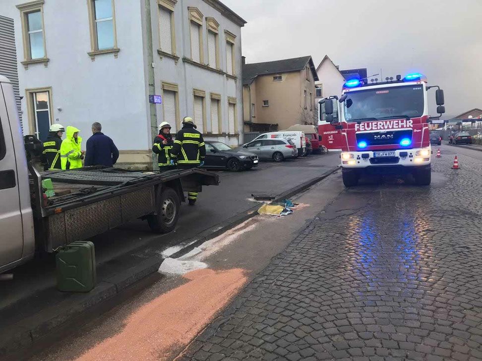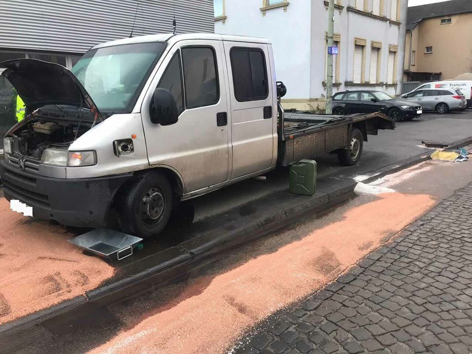 Der Fahrer eines Kleinlasters hat am 16. Dezember gegen 13.50 Uhr in der Luxemburger Straße bemerkt, dass aus seinem Fahrzeug Diesel auslief. Daraufhin alarmierte er die Feuerwehr.