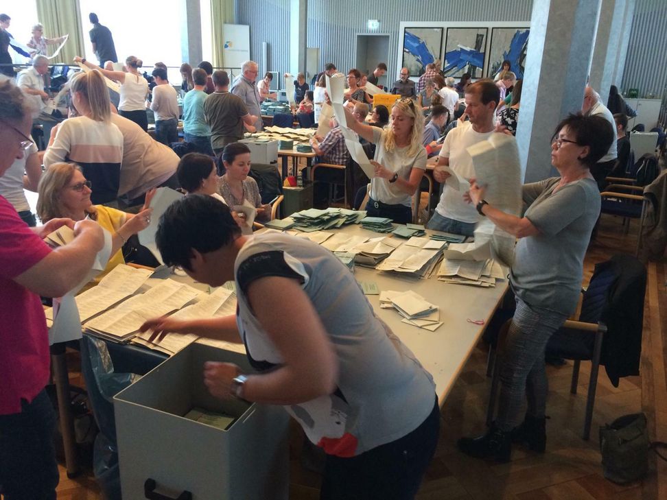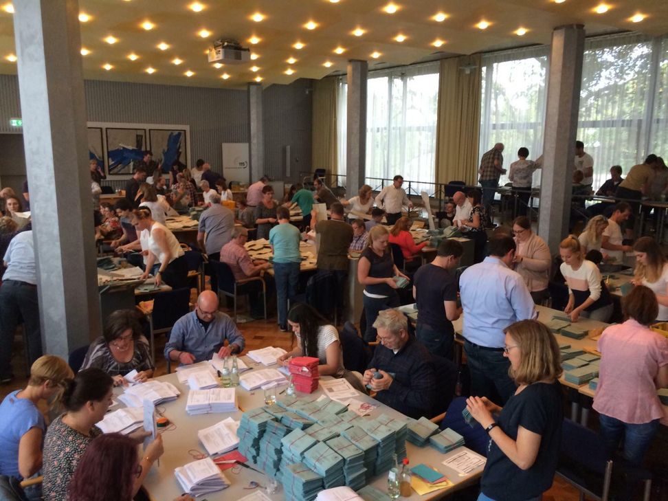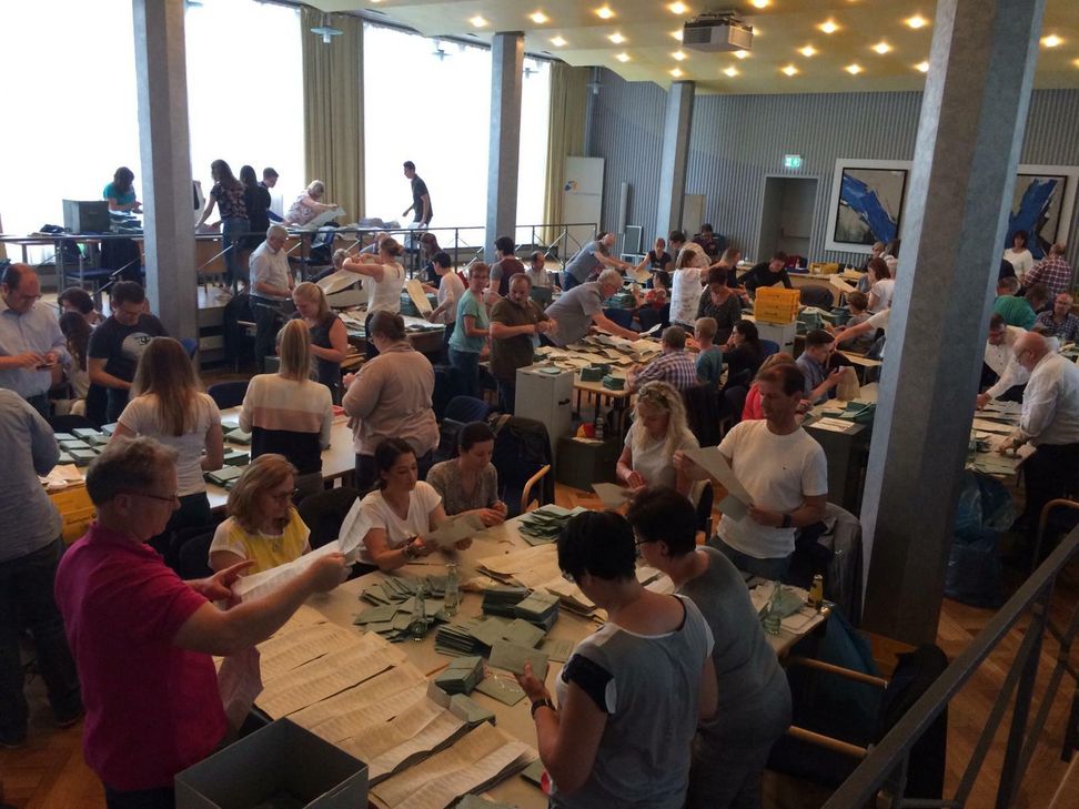 Noch läuft die Auswertung der Stimmzettel, die die rund 114.000 Wahlberechtigten des Landkreises Trier-Saarburg zur EU- und Kommunalwahl abgegeben haben. "Seit 14 Uhr sind hier in der Kreisverwaltung 160 Wahlhelfer mit der Vorbereitung und Auszählung von 37.000 eingegangenen Briefwahlunterlagen zur EU-Wahl beschäftigt", sagt Martina Bosch von der Pressestelle der Behörde. Insgesamt zeichnet sich eine höhere Wahlbeteiligung als noch 2014 ab.
