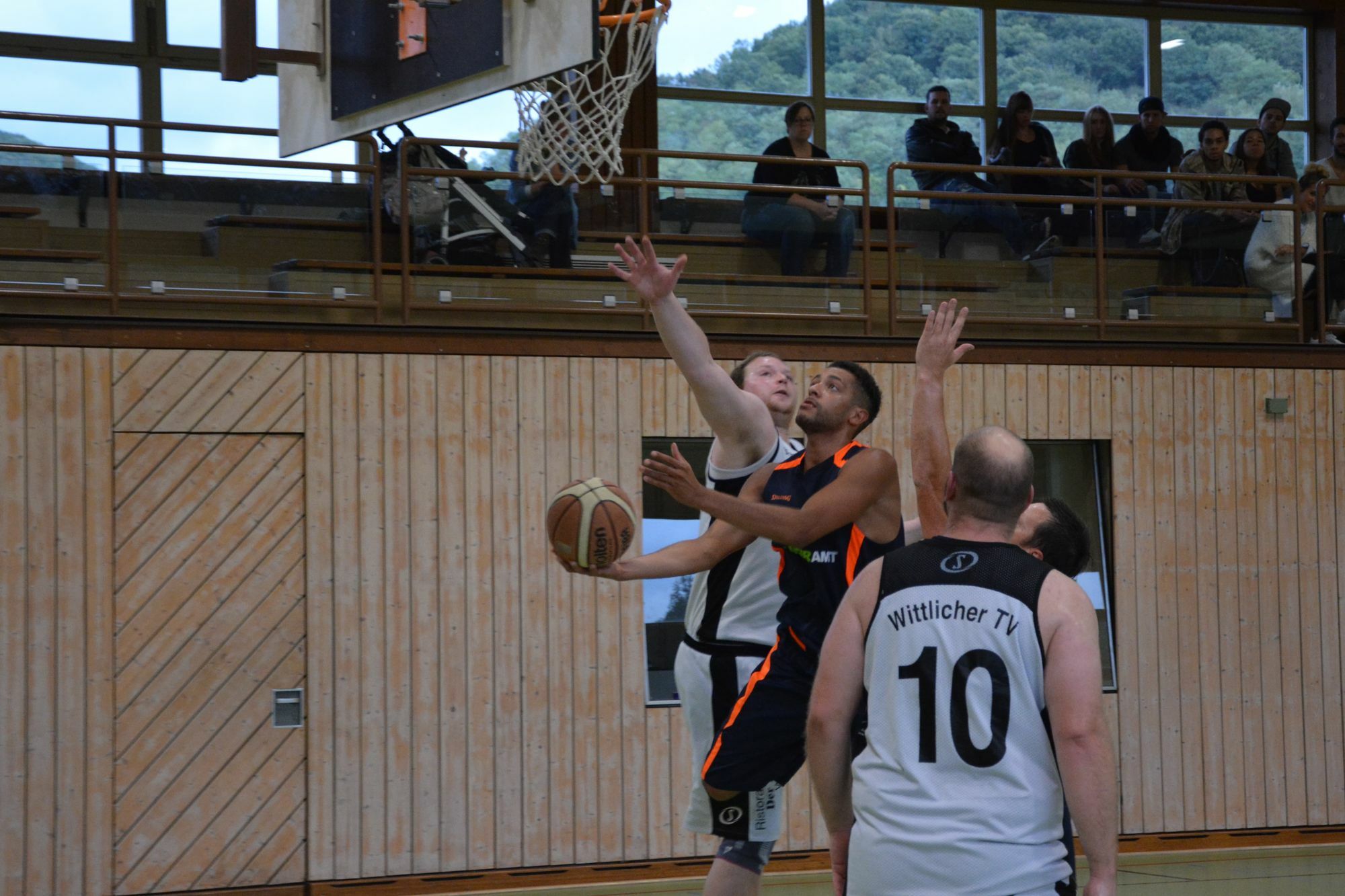 In der Top-Begegnung dieses Heimspieltages traf dann am späten Nachmittag der Bezirksligaaufsteiger SV Eintracht Irsch auf die Basketballer des Wittlicher TV, immerhin in der letzten Saison Vizemeister der Landesliga. Die Wittlicher Basketballer hatten bewusst auf ihren Startplatz in der Landesliga verzichtet und waren somit freiwillig in die Bezirksliga „abgestiegen“. Trainer Andreas Remagen und sein Team wussten wie schwer die Aufgabe gegen die Gäste werden sollte, trat das Team doch bis auf wenige Abgänge mit dem letztjährigen Landesligateam an. Für Motivation brauchte der Coach vor diesem Match also nicht zu sorgen, es galt für Trainer Remagen aber Lösungen gegen die körperlich überlegenen Brettspieler der Gäste zu finden. Dies umso mehr, als mit Jens Schüler ein Schlüsselspieler der Irscher auf der großen Position ausfiel. Zudem musste der Trainer erneut auf David Scheer verzichten, der immer noch an den Folgen einer Bänderverletzung laboriert, sowie auf den erkrankten Flügelspieler Kevin André. Mit Andrew Wiggins stand allerdings eine wichtige Verstärkung erstmals in einem Heimspiel zur Verfügung. Zudem hatte Coach Remagen mit Jeff Simon, Rouven Palz und Philipp Thebach drei Spieler der zweiten Mannschaft nachnominiert, um dem Kader eine größere Tiefe zu geben und Wechseloptionen zu haben. Die Partie begann für Irsch nicht wirklich vielversprechend. Das erfahrene Wittlicher Team startete mit schnellem und exakten Spiel und kam immer wieder über die Centerposition zu leichten Punkten. Die Irscher Basketballer taten sich zunächst schwer, die gut organisierte und körperlich starke Abwehr der Gäste aus der Säubrennerstadt zu durchbrechen und so nahm Trainer Remagen beim Stand von 2:7 die erste Auszeit.