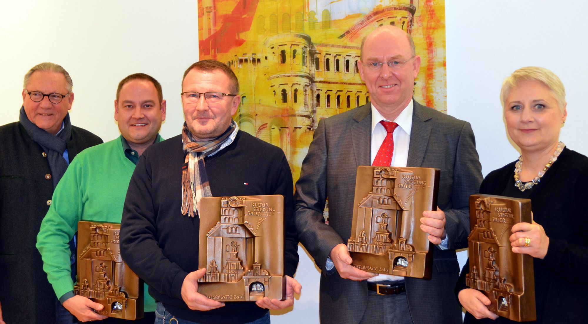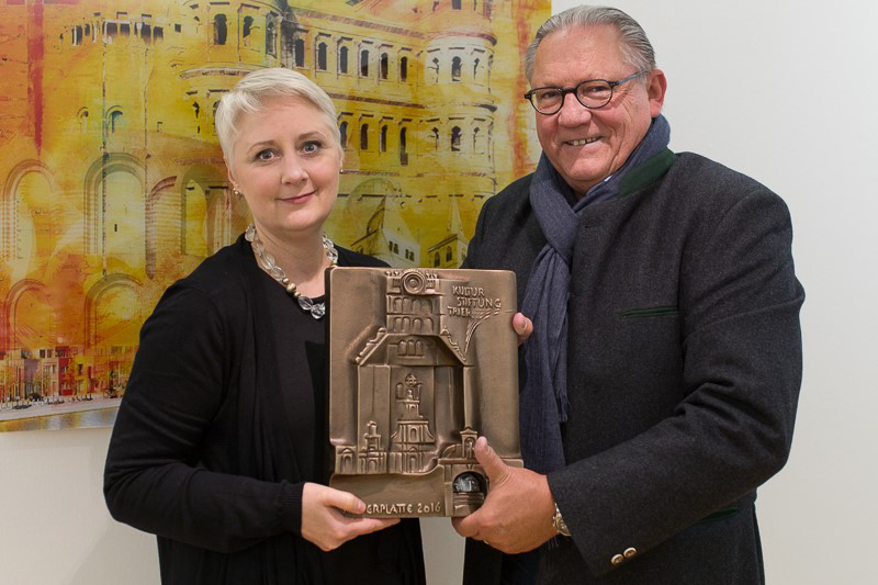 Über Zustiftungen, Spenden und Sachleistungen im Gesamtwert von 20.000 Euro kann sich die Kulturstiftung Trier freuen. In einer Feierstunde in den Geschäftsräumen des WochenSpiegel auf dem Petrisberg wurden die Kulturförderer dafür mit der jüngsten Edition der Stifterplatte ausgezeichnet.