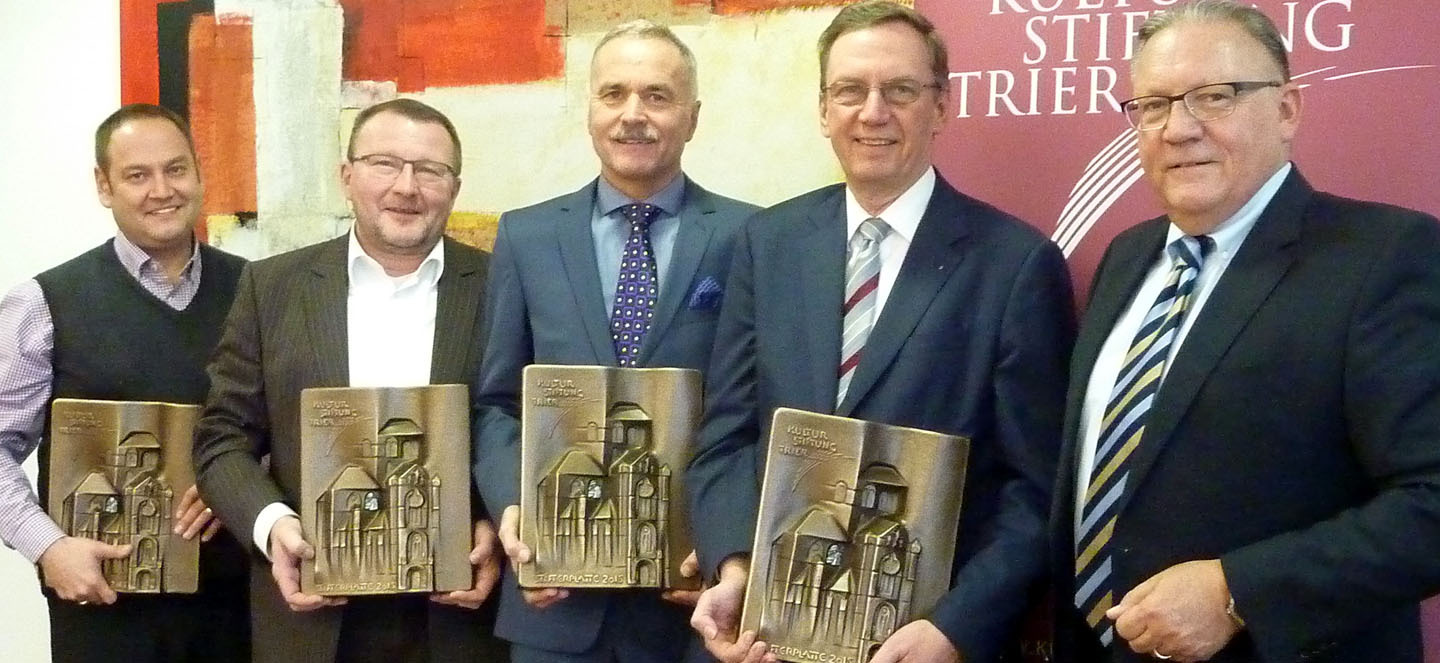 Als Dank für ihr Engagement überreichte Harry Thiele, Vorstandsvorsitzender der Kulturstiftung Trier, am vergangenen Mittwoch sechs Stifterplatten der aktuellen Edition 2015.