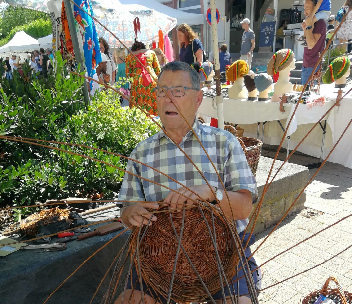 Thalfang. (SK) Mit Kind und Kegel waren am Sonntag Tausende gekommen, um nach zweijähriger Coronapause unter anderem Schmied, Drechsler, Seildreher, Keramikkünstler, Maler, Schreiner und Autorin Wilma Müller (19 Jahre und bereits 21 Bücher veröffentlicht) im Ortskern von Thalfang zu begrüßen. Einer, der schon fast zum »Inventar« gehört, so Verbandsgemeindebürgermeisterin Vera Höfner, ist der Korbmacher Walter Schultheiß, der für 25 Euro einen seiner individuellen Körbe an Hans Setz aus Idar-Oberstein verkauft hat, damit dieser sein Spießbratenholz »standesgemäß« aufbewahren kann.