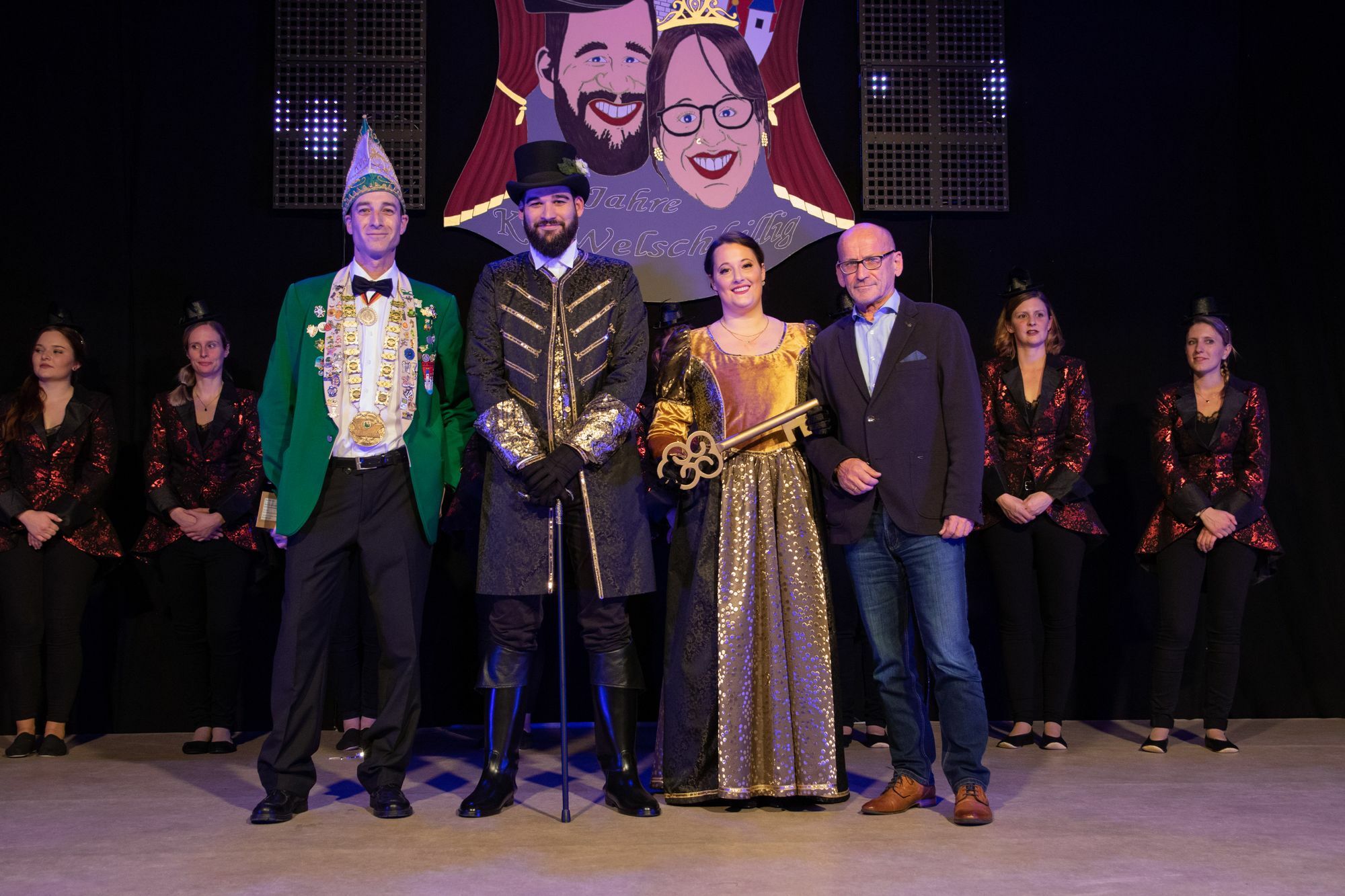Umrahmt wurde das Ordensfest von einem tänzerischen Programm mit Akteuren aus nah und fern. "I've got this feeling in my body" und das hatten sie. Die kleinen Tänzerinnen und Tänzer der kleinen grünen Garde rockten direkt am Anfang des Abends mit Ihrem Showtanz "Trolls" die Bühne. Wunderbare, temperamentvolle Gardetänze der MG Garde des Vereins und der Garde des KV Badem folgten. Nicht nur tänzerisch auf hohem Niveau, auch akrobatisch zeigten die Tanzmariechen Eva Schmitt (TSV Gisingen), Maja Niesel (KV Hetzerath), Eleanor Berg und Lea Franzen (KV Welschbillig) ihr Können. Ein besonders Highlight war der Gardetanz der großen grünen Garde des KVW. Neben einer Spendenübergabe der Heimatfreunde Welschbillig an die Jugendarbeit des Vereins gab es zahlreiche Ehrungen. Für 11 Jahre aktive Vereinsarbeit wurden Lea Franzen, Chantal Schneider, Dirk Schneider, Saskia Bohr, Taisja Nattmann und Jana Müller geehrt. Den bronzenen Verdienstorden des RKK, überreicht durch Eric Simos, erhielten Nancy Kludlinzki, Petra Olk und Maike Schneider. Den silbernen Verdienstorden erhielt Doris Orth.