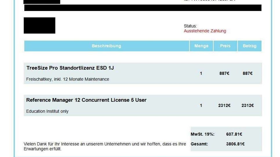 In allen Fällen werden unterschiedliche Software-Lizenzen den Kunden in Rechnung gestellt. In der Rechnung ist jeweils ein Link mit dem Namen " Rechnung herunterladen" hinterlegt. Sobald dieser Link aufgerufen wird, aktiviert sich Schadsoftware, die den Computer infiziert. Das Landeskriminalamt Rheinland-Pfalz gibt folgende Empfehlungen im Hinblick auf den richtigen Umgang mit E-Mails und darin implementierter Malware: