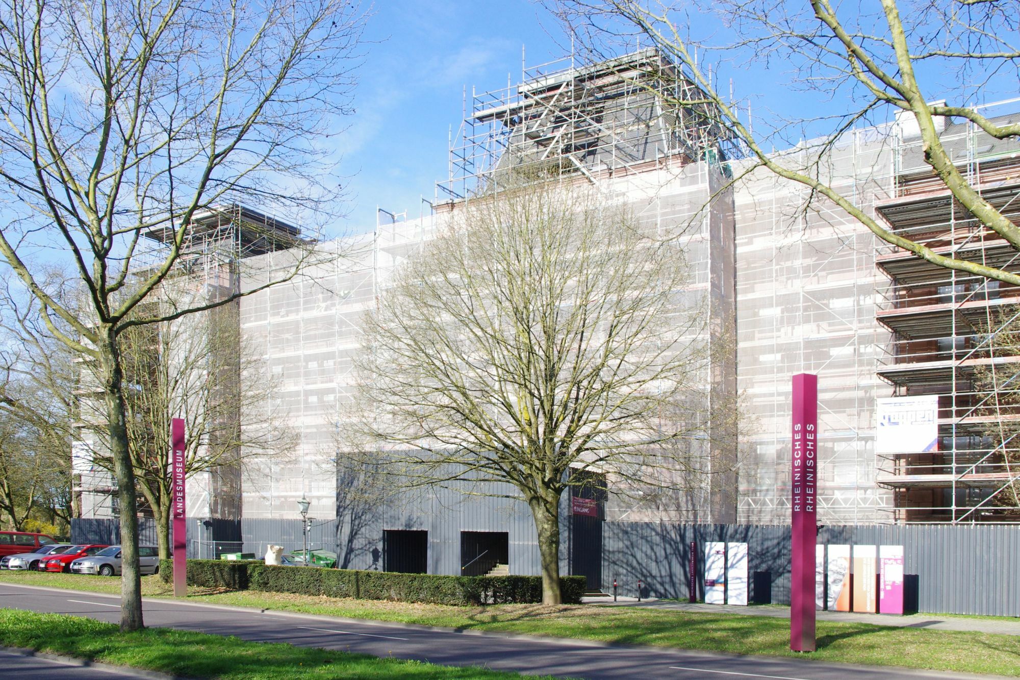 Für die nächste Zeit müssen die Besucher des Rheinischen Landesmuseums (RLM) in Trier ein Schutzdach unterqueren, um in das Gebäude zu gelangen. Die Fassade wurde eingerüstet. In einem letzten Bauabschnitt führt der Landesbetrieb Liegenschafts-und Baubetreuung (LBB) am Gebäude in der Weimarer Allee eine Fassadensanierung durch. Der Museumsbetrieb läuft ohne Einschränkungen weiter.