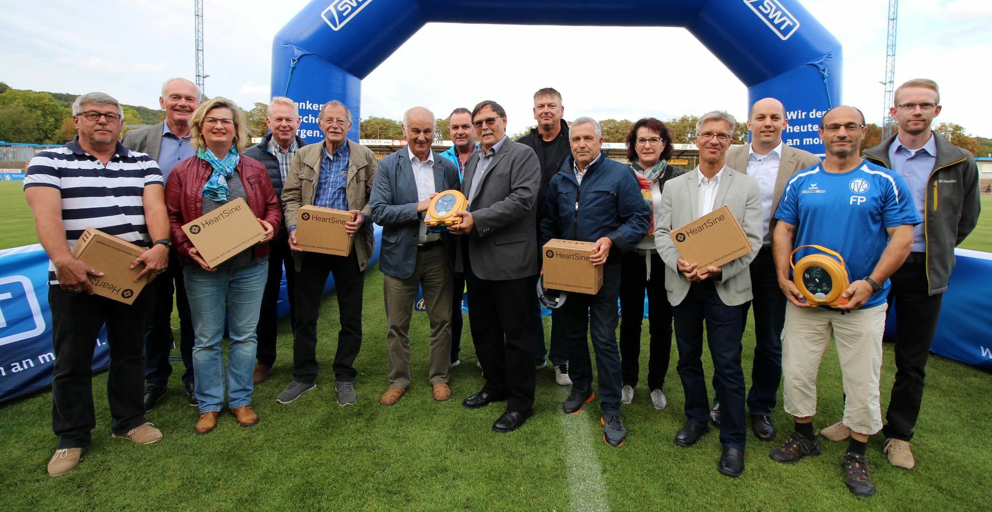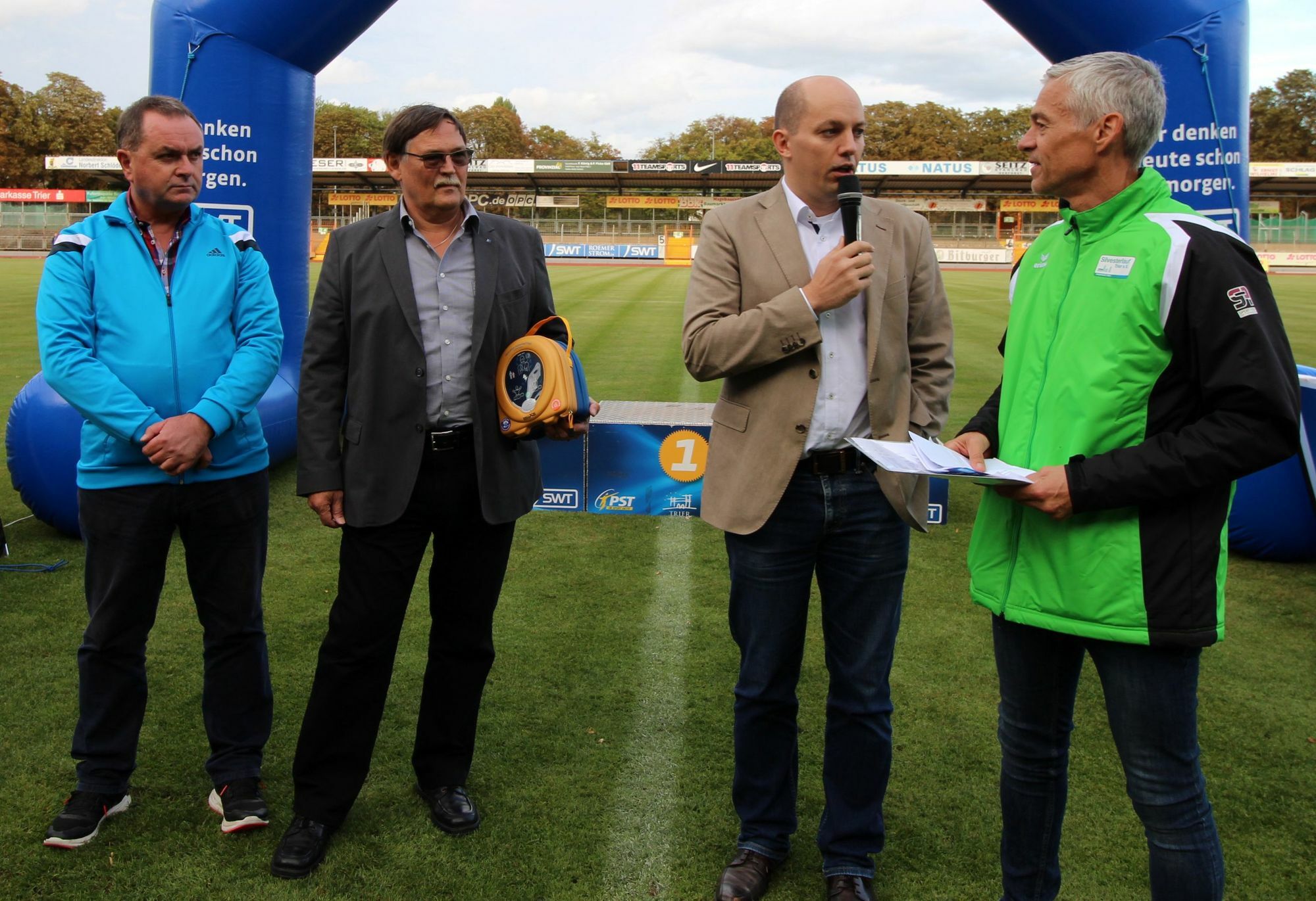 Auf Einladung des Silvesterlauf e.V. nutzten die Stadtsportverbands-Vorstandsmitglieder Marco Marzi (Vorsitzender), Michael Fremdling (Schatzmeister) und Michael Maxheim (Sportkreisvorsitzender Trier) die Veranstaltung, um über die Bedeutung dieser „Lebensretter für Vereine“ zu informieren und zu sensibilisieren. "Hoffentlich werden die Defibrillatoren nie benötigt. Aber wenn ein Sportler reanimiert werden muss, steigen nun die Überlebenschancen deutlich", sagte Fremdling: „Es ist ein gutes Gefühl, dass man im Notfall helfen kann. Mit der Übergabe der sechs Geräte an die Vertreter vom Polizeisportverein Trier, den Sport-Kegler-Verein Trier, die Spielvereinigung 1920 Trier-Zewen, die SSG Kernscheid, die TSG Pfalzel und TV Germania Trier setzte der Stadtsportverband eine Tradition fort. Denn bereits vor zwei Jahren waren vier Defibrillatoren an andere Vereine übergeben worden. „Wir haben die Geräte gerne für unsere Vereine aus unseren Mitteln erworben und kostenlos weitergegeben, denn angesichts des demografischen Wandels gibt es immer mehr ältere Sportler und somit auch mehr Notfälle“, sagte Marco Marzi. Das Wichtigste an den rund 1.250 Euro teuren Defibrillatoren: sie sind selbsterklärend. „Jeder kann sie bedienen, jeder kann helfen. Man kann nichts falsch machen, nur Leben retten“, betont Fremdling. Die Defibrillatoren werden nun auf den Sportanlagen der sechs Klubs installiert: „Die sechs Vereine, die sich bei uns beworben hatten, repräsentieren die Vielfalt des Trierer Vereinslebens, und es zeigt auch die vielen Angebote, die es für ältere Sportler gibt“, so Marzi. Fotos: FF