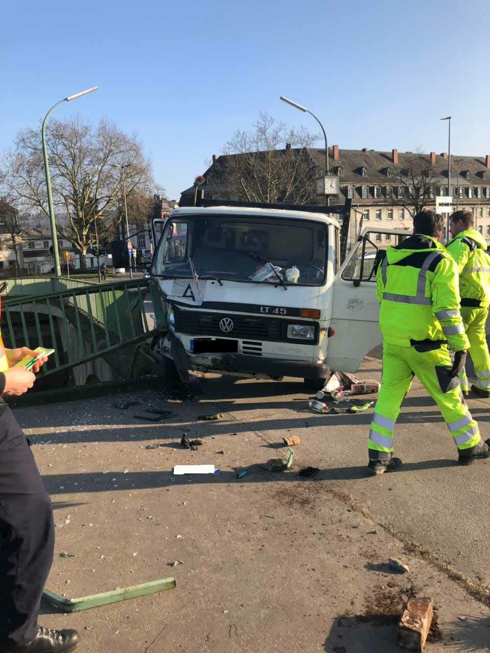Ein Lieferwagen ist am 21. Februar gegen 15.10 Uhr in das Geländer der Kaiser-Wilhelm-Brücke gekracht. Ein Fußgänger wurde verletzt. Der Fahrer flüchtete im Anschluss.