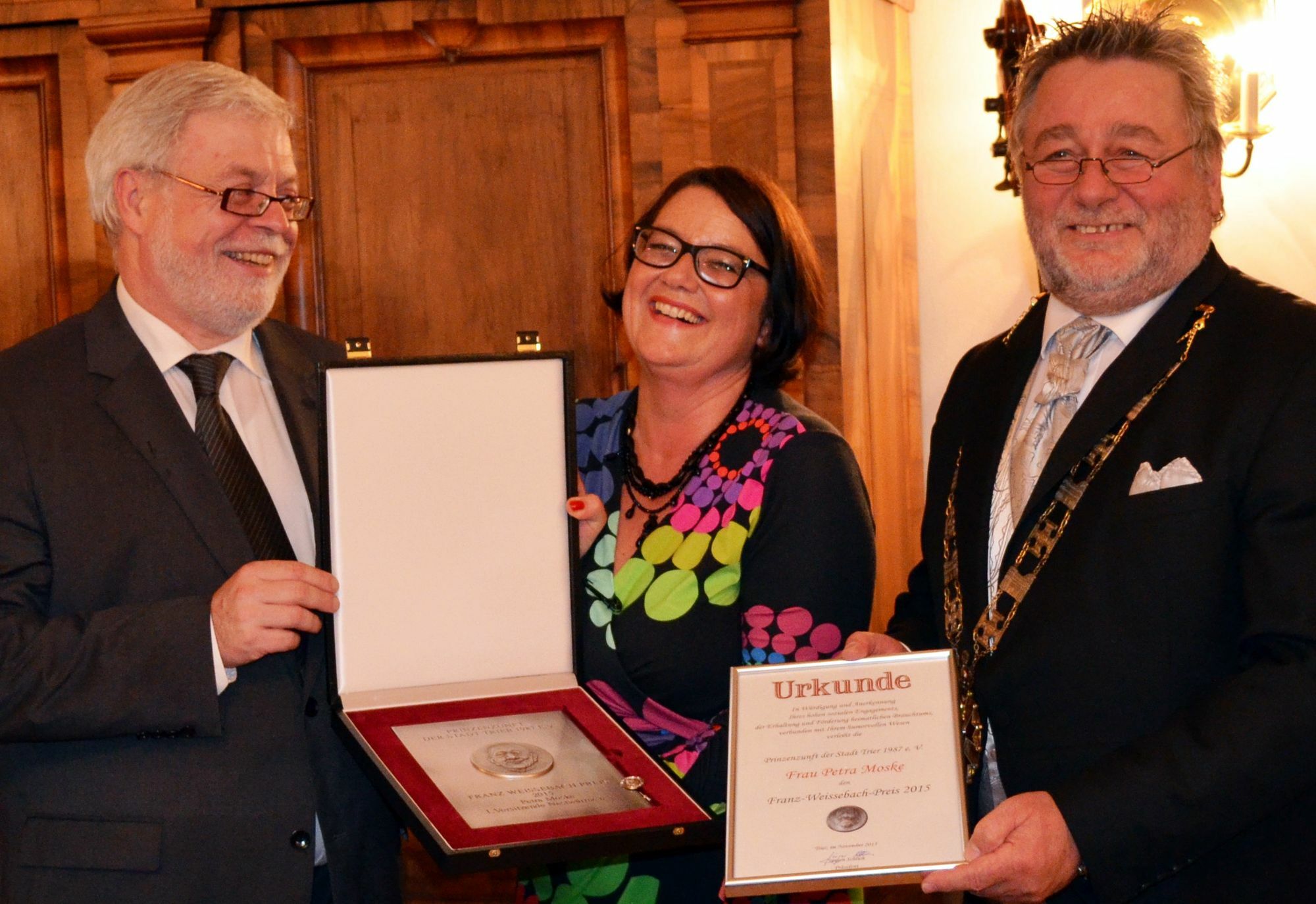 Stimmungsreich und voller "good vibrations" verlief die emotionale Feierstunde anlässlich der Verleihung des Weißebach-Preises an Petra Moske, Mitgründerin und Vorsitzende von "Nestwärme", durch die Prinzenzunft der Stadt Trier. Vorjahrespreisträger und Caritasdirektor Dr. Bernd Kettern lobte die Nestwärme-Gründerin als Energiebündel, das eine einzigartige Verbindung aus Humor und sozialem Engagement verkörpere.
