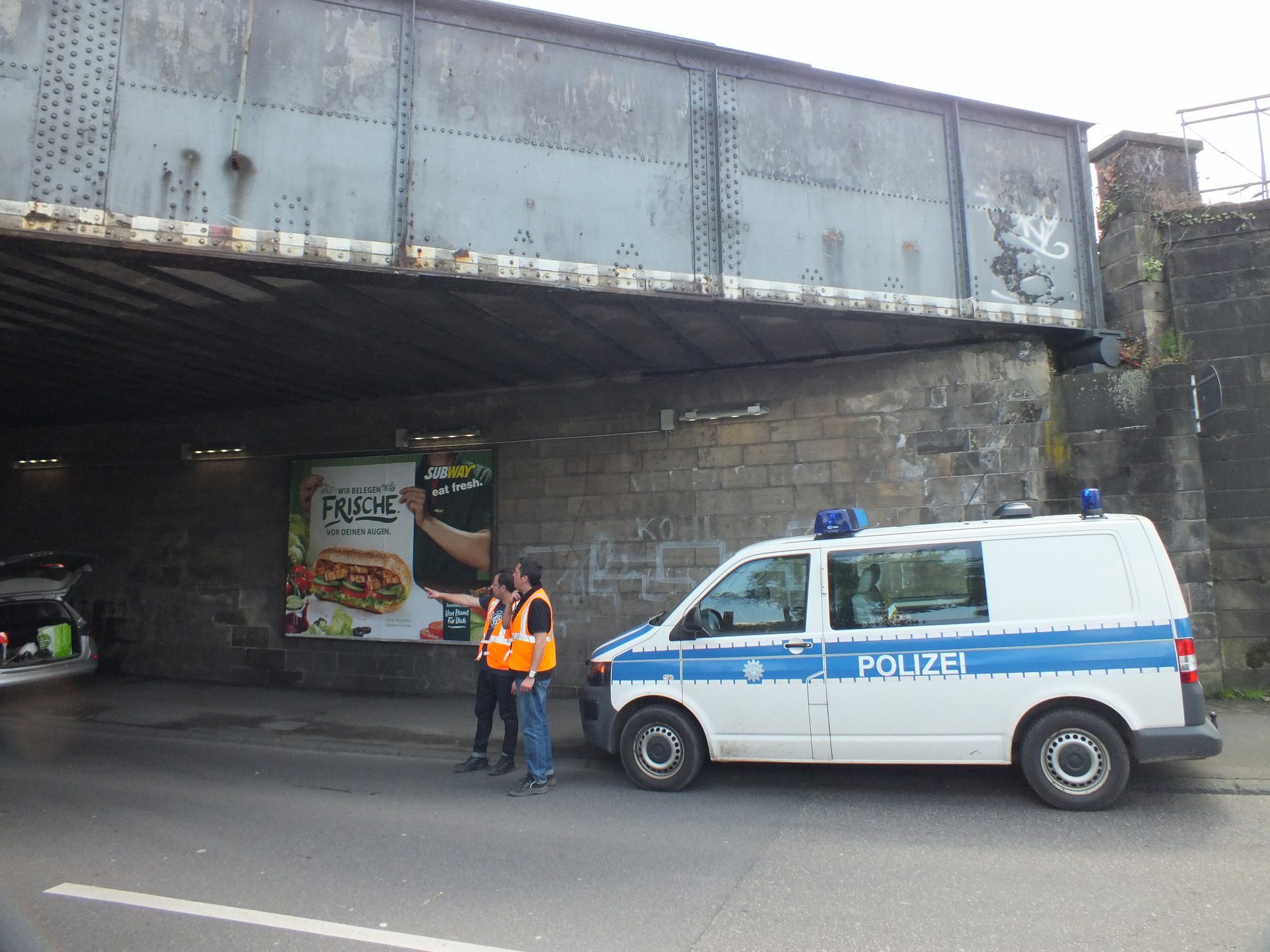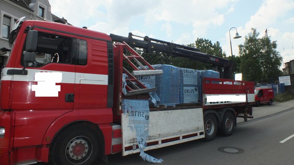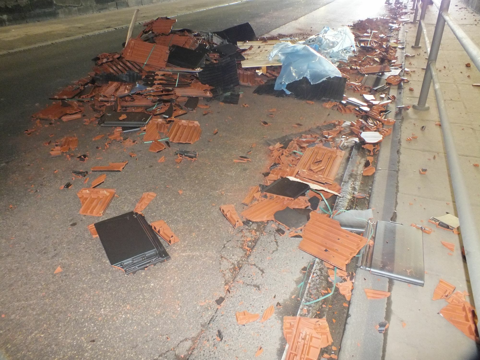 Der Fahrer fuhr laut eigener Aussage wie immer unter der Brücke durch, als es krachgte und eine Palette mit Dachziegeln auf die Fahrbahn fiel. Zu diesem Zeitpunkt gab es keinen Gegenverkehr. Der LKW wurde leicht beschädigt, ebenso entstand einen Schaden an der Brücke. Die Straße wurde nach dem Unfall vorübergehend für etwa 15 Minuten von der Polizei voll gesperrt. Der Fahrer des Lastwagen fuhr vorsichtig unter der Brücke heraus. Die Stadtreinigung Trier entfernte die Dachziegeln von der Fahrbahn. Speziallisten der Deutschen Bahn waren ebenfalls vor Ort, um die Schäden an der Brücke einzuschätzen. Der Bahnverkehr konnte allerdings ungehindert weiter rollen. Laut Polizei war der Kran ganz eingefahren. Eine Kleinigkeit am Auflieger könne jedoch dazu führen, dass de LWK unter der Brücke hängen bleibt. Wie hoch die entstandenen Schäden sind, konnte noch nicht gesagt werden. Zur zeit wird der Verkehr von der Polizei einspurig an der Unfallstelle vorbei geleitet. Es kommt zu starken Verkehrsbehinderungen und langen Rückstaus. Busse der SWT wurden umgeleitet. Im Einsatz war die Polizei Trier mit mehreren Einsatzfahrzeugen und die Stadtreinigung Trier. Fotos: Agentur Siko
