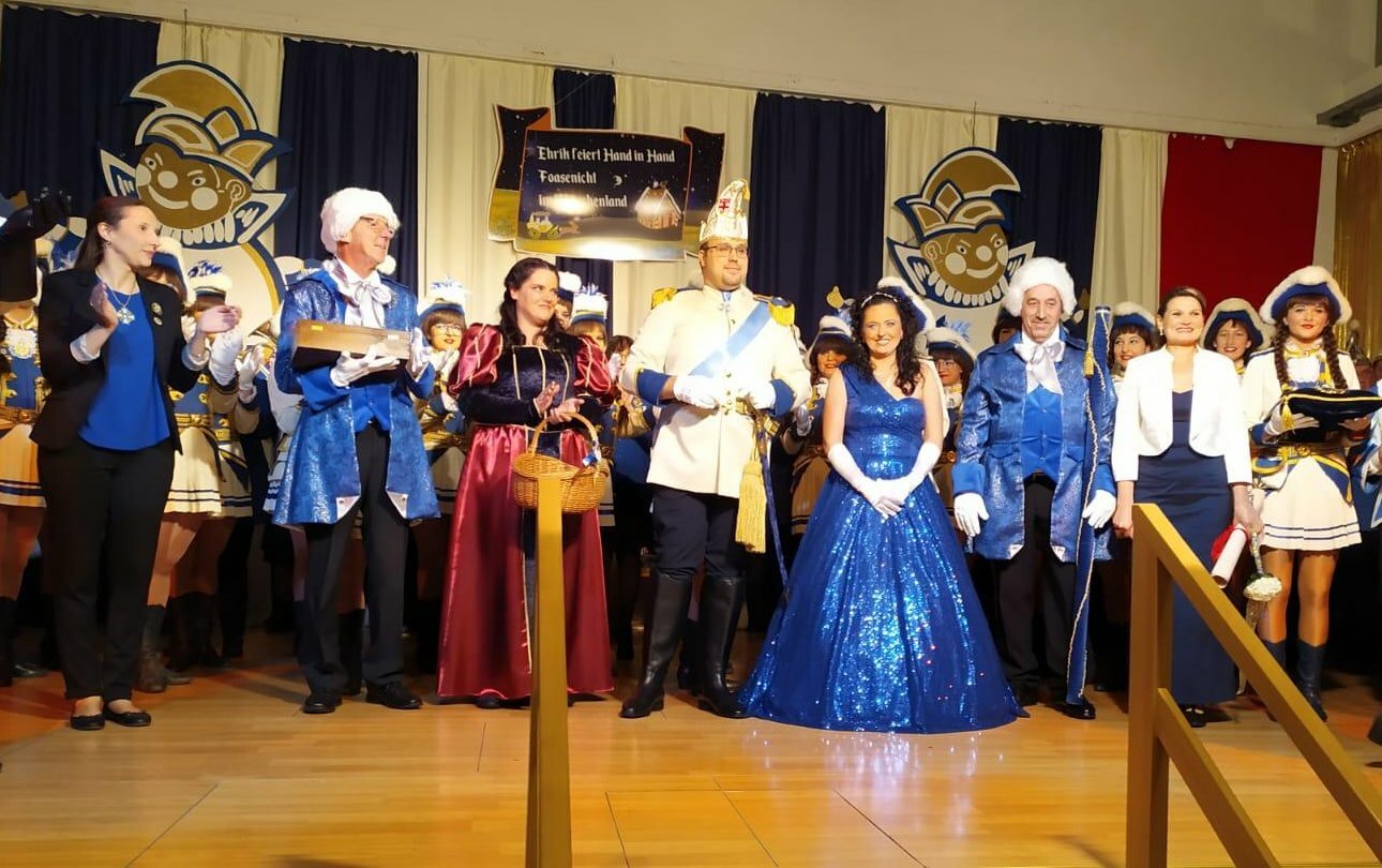 Die Hoheiten Prinz Mätty I. aus em Haasenställchen (Matthias Haas) und Prinzessin Jenny I. vom Knusperhäuschen (Jenny Haas) sind das 30. Prinzenpaar, das turnusgemäß vom Theater- und Karnevalsverein "Blau-Weiß" 09 Ehrang gestellt wird. Der gestiefelte Kater (Maximilian Haas), der Page (Florian Zimmer), die Adjutanten (Jörg "Konny" Konrad, Kurt Theo Thonet) sowie die Hofdamen (Irina Riemer, Natascha Staudt) bilden das Gefolge und ein märchenhaftes Bild auf der großen Bühne. Durch das kurzweilige, dreistündige Programm führte charmant und locker das Moderationsduo Gertrud Haas als Präsidentin und Svenja Braun als Vizepräsidentin. Wie bei Inthronisationen so üblich wurde vorab das Prinzenpaar der Session 2018/2019 von der KG Rot Weiß Ehrang mit Prinz Heinz I. von der Kyll und Prinzessin Ana I. vom Tejo exthronisiert: Dankesworte des 1. Vorsitzenden Jürgen Haubrich folgten, bevor ein Höhepunkt dem nächsten folgte. Nicht erstmals in Ehrang, allerdings erstmalig bei "Blau-Weiß" führten die Trierer Hofmusikanten die "blau-weiße" Riege mit "Treuer Husar" und „Ach wär ich nur" an und sorgten so für einen tollen Rahmen während des Einzugs des neuen Prinzenpaares. Gertrud Haas stellte die Tollitäten samt Gefolge vor, bevor Prinzenkette und Blumenzepter durch das Ex- an das neue Prinzenpaar überreicht wurden. Gleich darauf folgte die Thronrede: "Macht euch all zum Küssen bereit, in Ehrik ist jetzt Märchenzeit. Ganz Ehrik, egal ob rot oder blau, ruft jetzt laut: Ehrik Helau!" oder "Die Prinzessin ist wunderschön, bescheiden und still, weil sie hier nichts sagen will." Darauf die Prinzessin schlagfertig: "Mein Prinz, der Mätty, hat dafür eine große Klappe, auch unter seiner Prinzenkappe." Traditionsgemäß wurde auch an diesem Abend die Lokalpolitik auf die Schippe genommen, Ortsvorsteher Berti Adams scherzte mit und überreichte ohne Widerstand den Schlüssel von Ehrang. Die Tollitäten nahmen dankend an und sprachen in ihren närrischen Paragrafen frech politische Probleme an und kritisierten amüsant: "Durch den gecancelten Moselaufstieg fließen die Millionensummen vom Bund nach Ehrik. Hiermit wird unser Verkehrs- und Umweltprojekt Eifeltor finanziert." Oder: "Wir, das Ehriker Prinzenpaar fordern die sofortige Loslösung von Trier und damit die Unabhängigkeit der Stadt Ehrik." Der Präsident des Landesverbands Rhein-Mosel-Lahn im Bund Deutscher Karneval, Peter Pries, gratulierte dem neuen Prinzenpaar und holte zusammen mit seiner und der neuen ATK-Geschäftsführerin Doris Köhl Ehrungen aus der vergangenen Session nach: Heinz Haubrich erhielt den RML-Verdienstorden, Michael Schumacher und Harald Otto den ATK-Verdienstorden, Jürgen Thonet und Willibald Schneider den Vereins-Verdienstorden. Als designiertes Trierer Stadtprinzenpaar überraschten Harald Junkes und Marion Silano die Ehranger Narren mit ihrem Besuch auf der "blau-weißen" Bühne, um ihre Glückwünsche an die neuen Ehranger Tollitäten zu überbringen. Mit "Ehrik feiert Hand in Hand, Foasenicht im Märchenland" will der Verein im Jahr des 111-jährigen Vereinsbestehens Märchen sowie sonstige heimliche und unheimliche Narretei an seinen zahlreichen Karnevalsveranstaltungen präsentieren. So stellte der 1. Vorsitzende Jürgen Haubrich den neuen Sessionsorden vor, bevor im Anschluss die Showtanzgruppe "Elements" ihre neue mottogemäße Parodie, die Prinzennichte Marie Hank ihr Gesangsdebüt, die Fahnenschwenker, die in diesem Jahr ihr 40-jähriges Jubiläum feiern, das Solomariechen Marie Sophie Otto und die Große Garde ihre neuen Sessionstänze dem Publikum zum ersten Mal präsentierten. Mit langanhaltendem Applaus und Standig Ovations machte sich die harte Trainingsarbeit über die vergangenen Monate bezahlt. Mit dem Ehranger Heimatlied und dem Vereinslied "Blau und Weiß" sorgte Helmut Wagner traditionsgemäß für den krönenden Abschluss eines unvergesslichen Abends. Alle Infos zur Session 2019/2020, Termine, Infos zum Ticket-VVK der Kostümsitzungen ab 28. Dezember sowie dem 48. Ehranger Rosenmontagszug gibt es hier. RED