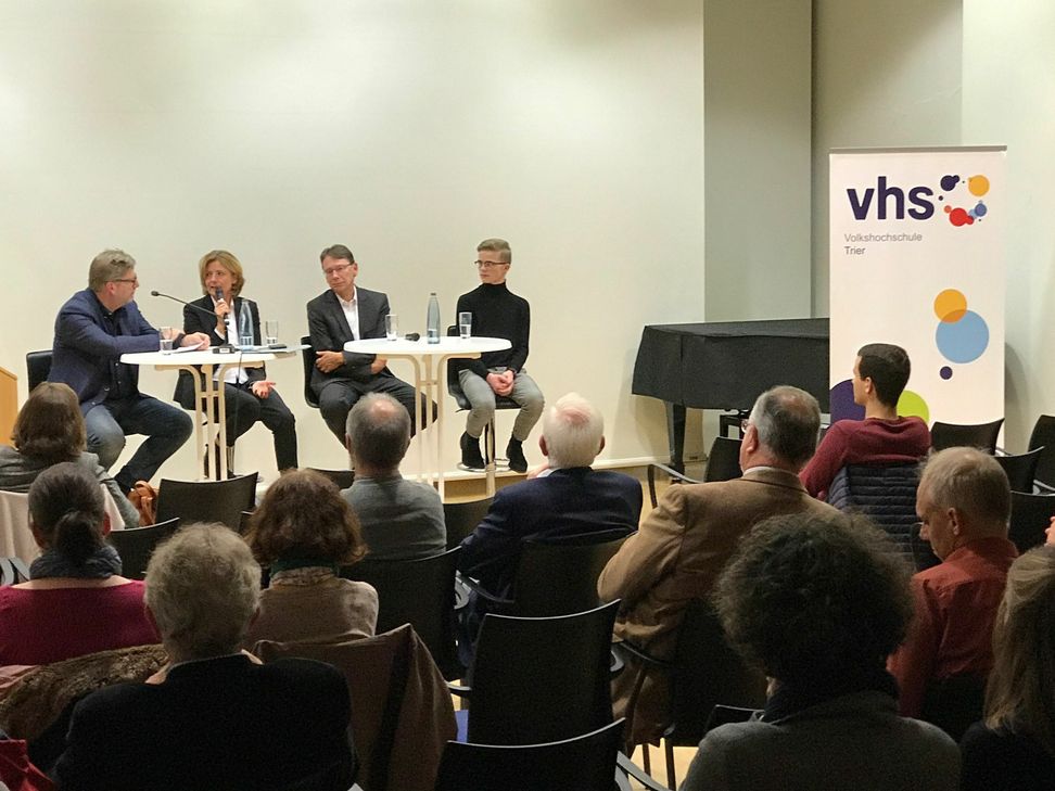 In diesen Rahmen nahm Dreyer an einer öffentlichen Diskussion mit dem Trierer Politikwissenschaftler Professor Uwe Jun teil. Zudem wurde das Trierer Jugendparlament eingeladen, einen Vertreter zu entsenden. In dem Gespräch ging es auch um die Politisierung von Jugendlichen und jungen Erwachsenen und um die Bedeutung prägender Persönlichkeiten der Zeitgeschichte für diesen Prozess.