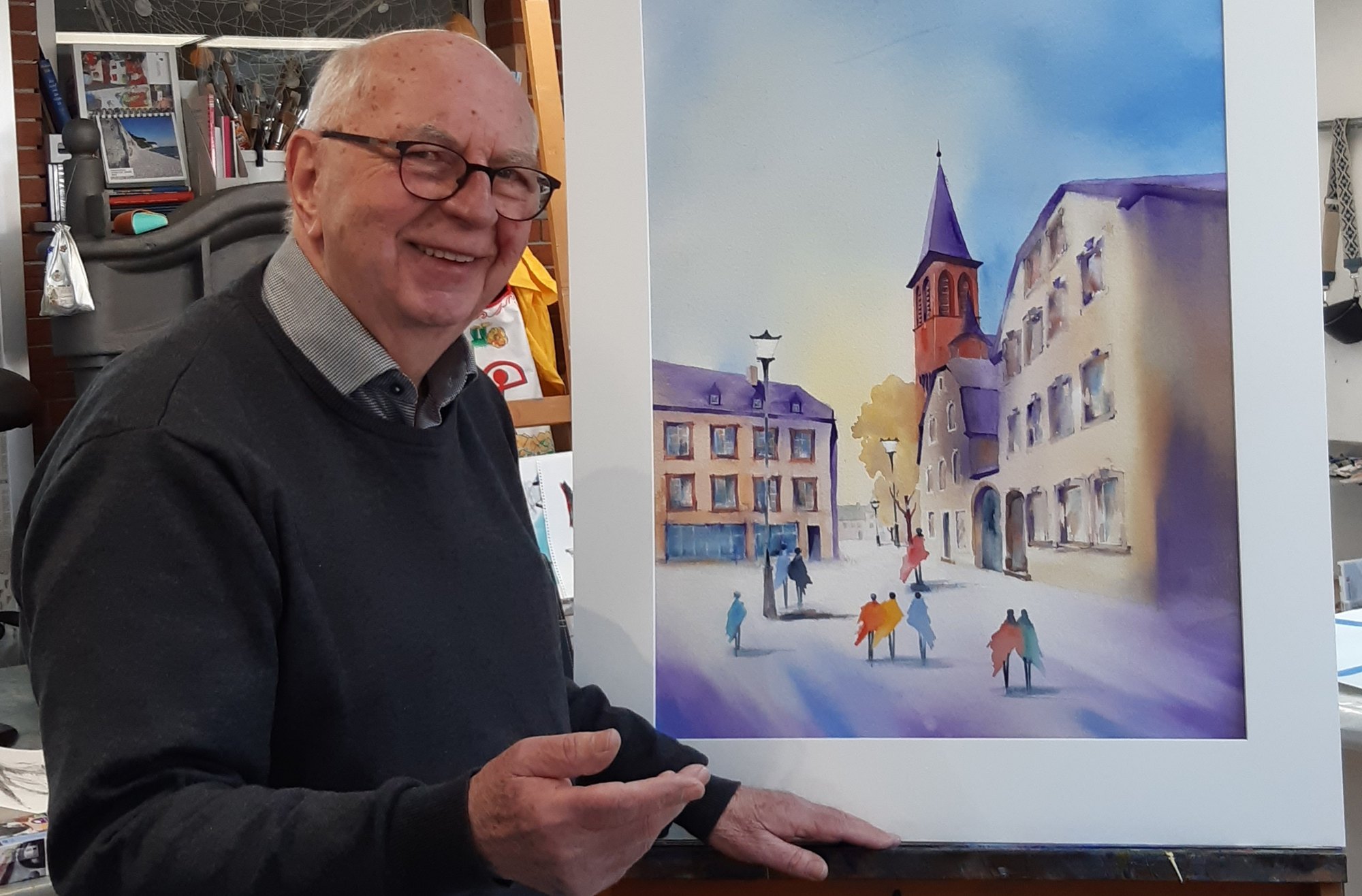 Eigentlich wollte Manfred Weiland nur eine Bekannte motivieren, am diesjährigen Gestaltungswettbewerb teilzunehmen. Doch dann ergriff ihn selbst die kreative Begeisterung. "Ich habe die Erfahrung gemacht, dass die erste Idee oftmals die beste ist", erklärt der 78-Jährige. Dieses Prinzip zieht sich durch sein Leben: Nach der Schulausbildung wollte er eigentlich Künstler werden, entschied sich jedoch für eine Karriere als Bauleiter in Trier. Doch mit der Pensionierung kehrte er zu seiner eigentlichen Leidenschaft zurück. Bei Viktoria Prischedko vertiefte er sein Können und entdeckte seine Liebe zur Landschafts- und Architekturmalerei.