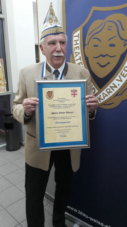 Sessionsorden, Verdienstorden, Kulturorden: Das Ehranger Prinzenpaar aus "blau-weißem" Hause mit Seiner Tollität Prinz Johannes I. und Ihrer Lieblichkeit Prinzessin Gaby II. hießen gemeinsam mit dem 1. Vorsitzenden Jürgen Haubrich und Präsidentin Gertrud Haas Gäste aus den Bereichen Politik und Kultur sowie Ehrenmitglieder, Ehrensenatoren und Aktive aus den eigenen Reihen in der Henry-Zingen-Halle des Ehranger Bürgerhauses beim Prinzenempfang willkommen. Dieter Römer, langjähriger Vorsitzender der St. Seb. Schützenbruderschaft Ehrang 1480, erhielt den 39. karnevalistischen Sonderorden "Dem Förderer des Kultur- und Vereinslebens in Ehrang/Quint", den der Verein seit 1965 verleiht. Dieter Römer zeichnete sich bis zuletzt 30 Jahre als 1. Brudermeister bei den Schützen verantwortlich, denen er seit 1957 angehört. Er hat in drei Jahrzehnten viel bewegt für seinen Verein, auch durch Reihe von Veranstaltungen, die er eingeführt hat, sowie im überörtlichen Schützenbereich. Im Millenniumsjahr 2000 hat er das Bundesjugendschützenfest nach Ehrang geholt und in seiner Verantwortung fand 2014 der Diözesanjungschützentag an der Kyll statt. Römer hat sich auch besonders für das vereinseigene Schützenhaus engagiert, indem er eine Reihe Investitionsmaßnahmen umsetzen ließ und dazu beigetragen hat, dass die Heimstätte nicht nur für sportliche Belange des Vereins, sondern auch als Versammlungs- und Veranstaltungsstätte für viele andere Ortsvereine fit gemacht wurde. Bei all seinen Aktivitäten stand und steht der Nachwuchs im Fokus. Jürgen Haubrich würdigte in seiner Laudatio das außergewöhnliche Engagement des Ehrangers mit Herzblut. Für langjährige Mitgliedschaft und besondere Treue wurde Manfred Hotz aus Gusterath zum "blau-weißen" Ehrenmitglied ernannt. Er gehörte viele Jahre dem Vorstand an und hat seit 1982 den Schankbereich als eigenständige Abteilung aufgebaut. Den Verdienstorden des Vereins erhielten Prinz Johannes I. und Prinzessin Gaby II. sowie die Aktiven Birgit Lautwein, Rudi Labarbe und Anna Haubrich. Mit dem Verdienstorden des Bund Deutscher Karneval (BDK) in Silber wurden Gertrud Haas und Willi Feil ausgezeichnet. Der Verdienstorden des BDK-Landesverbandes Rhein-Mosel-Lahn wurde an Tina Wasniewski verliehen. Als langjährige Tänzerin der "blau-weißen" Garden und Trainerin des Männerballetts wurde Carina Schumacher mit dem Tanzverdienstorden in Gold des BDK-Landesverbandes Rhein-Mosel-Lahn von Vizepräsidentin und Geschäftsführerin Doris Köhl geehrt. Grüße der Rheinischen Karnevals-Korporationen (RKK) überbrachte der Bezirksvorsitzende Pierrot Klein.