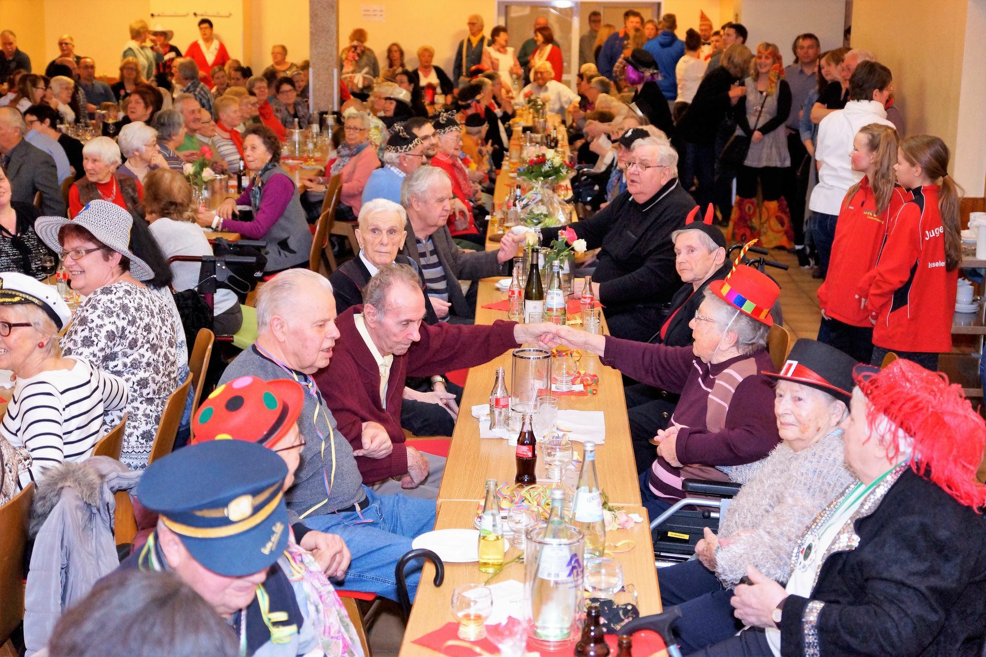 Unter dem Motto „Issel 2017 – Wenn die Narrenkappe passt, Issel hat die Welt zu Gast" führte Sitzungspräsidentin Elisabeth Mezger alte und junge Narren durch ein vierstündiges kurzweiliges Sitzungsprogramm. Die perfekt einstudierten tänzerischen Darbietungen der Solo Mariechen (Thea Schroeder und Sophie Wiedemann) sowie der Garden überzeugten ebenso wie der Büttenvortrag von Johannes Heinz alias Christophorus von der Moselbrück. Ebenso gelungen waren die musikalischen Darbietungen des ICV-Chores. Der schwungvollen Showband –unter der Leitung von Norbert Schex- gelang es ebenso mühelos wie dem ICV-Ehrenvorsitzenden Hermann Konz –dieser als Solo-Sänger-, das närrische Publikum zum Mitsingen zu bewegen. Wie üblich wird der/die älteste Besucher/in der ICV-Seniorensitzung durch das Isseler Prinzenpaar besonders geehrt. Mit 98 Jahren waren dies Marga Reis sowie der 93jährige Peter Fries. Prinz Jan I. aus dem Asseler Ecken und ihre Lieblichkeit Prinzessin Sarah I. vom goldig glänzenden Taler Treverorum gratulierten den ebenso stolzen wie rüstigen Senioren und überreichten ihnen den Sessionsorden und einen Blumenstrauß.